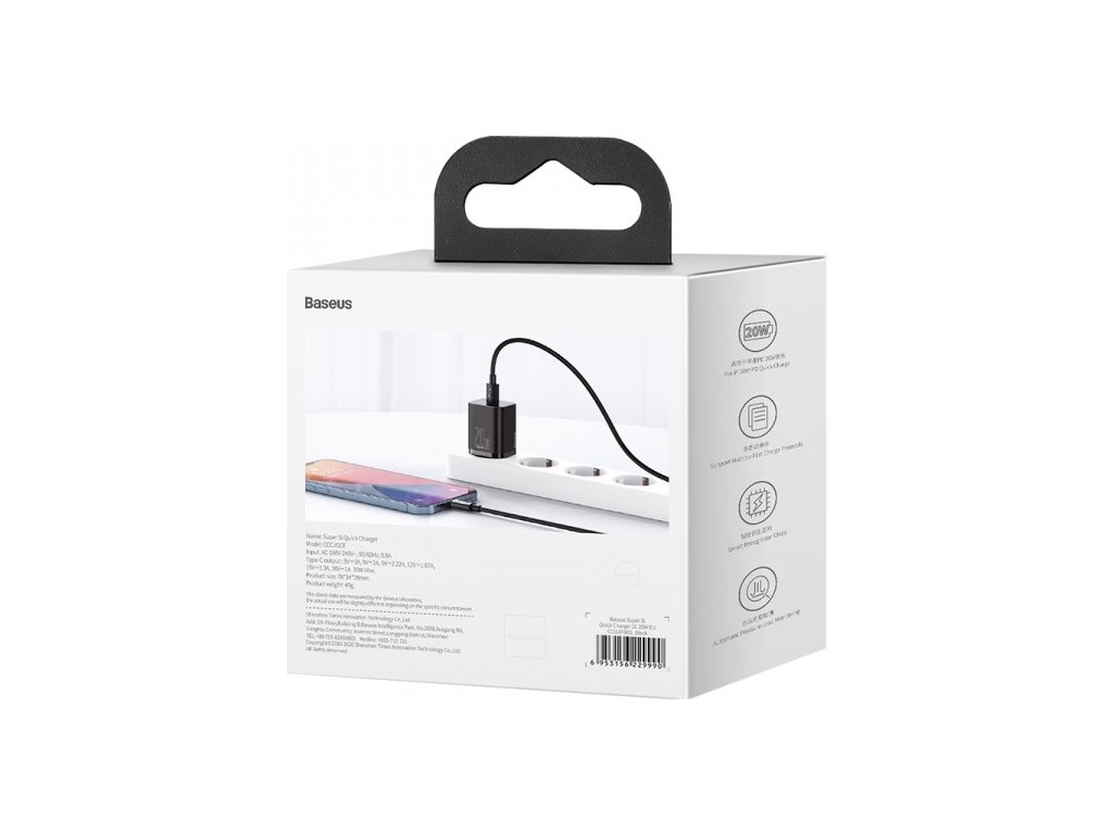 Baseus Travel Charger set Super Si 1C PD Fast charger 20W EU Black (CCSUP-B01)