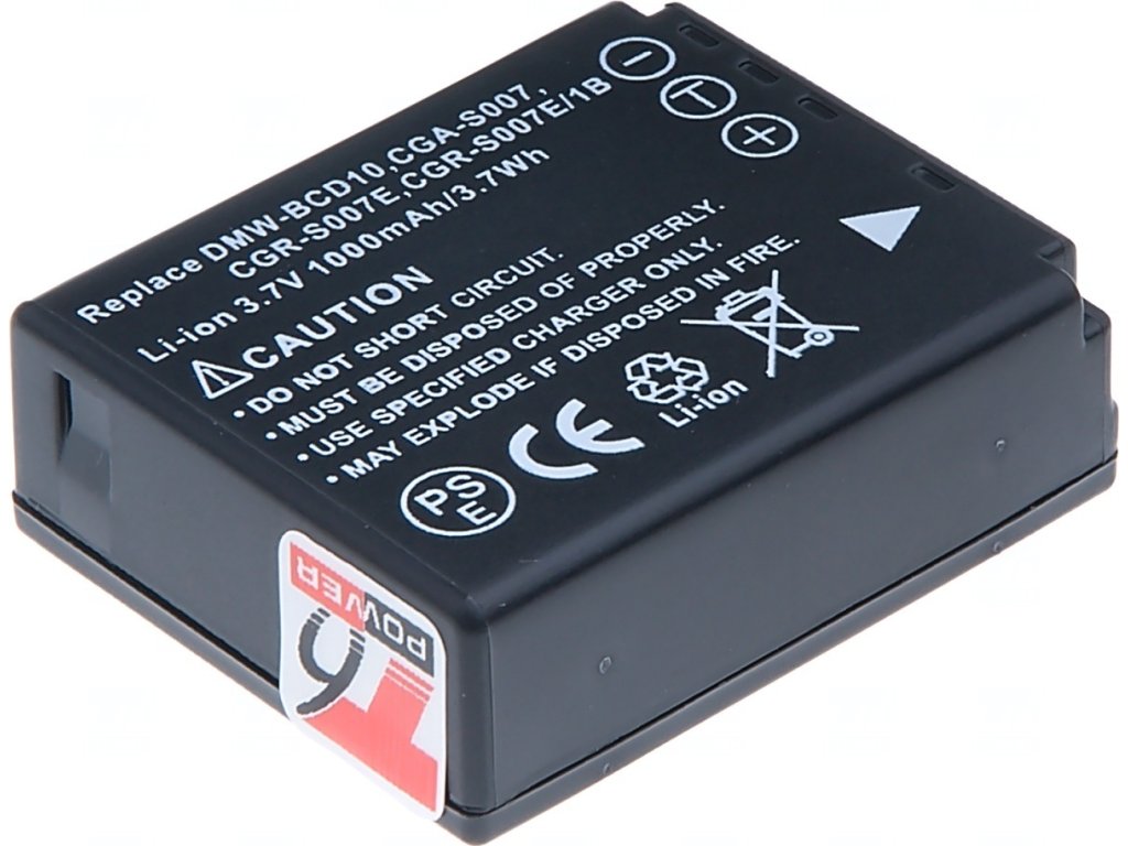 Baterie T6 Power pro Panasonic DMW-BCD10, CGA-S007, CGR-S007E, CGR-S007E/1B, 850mAh, 3,1Wh