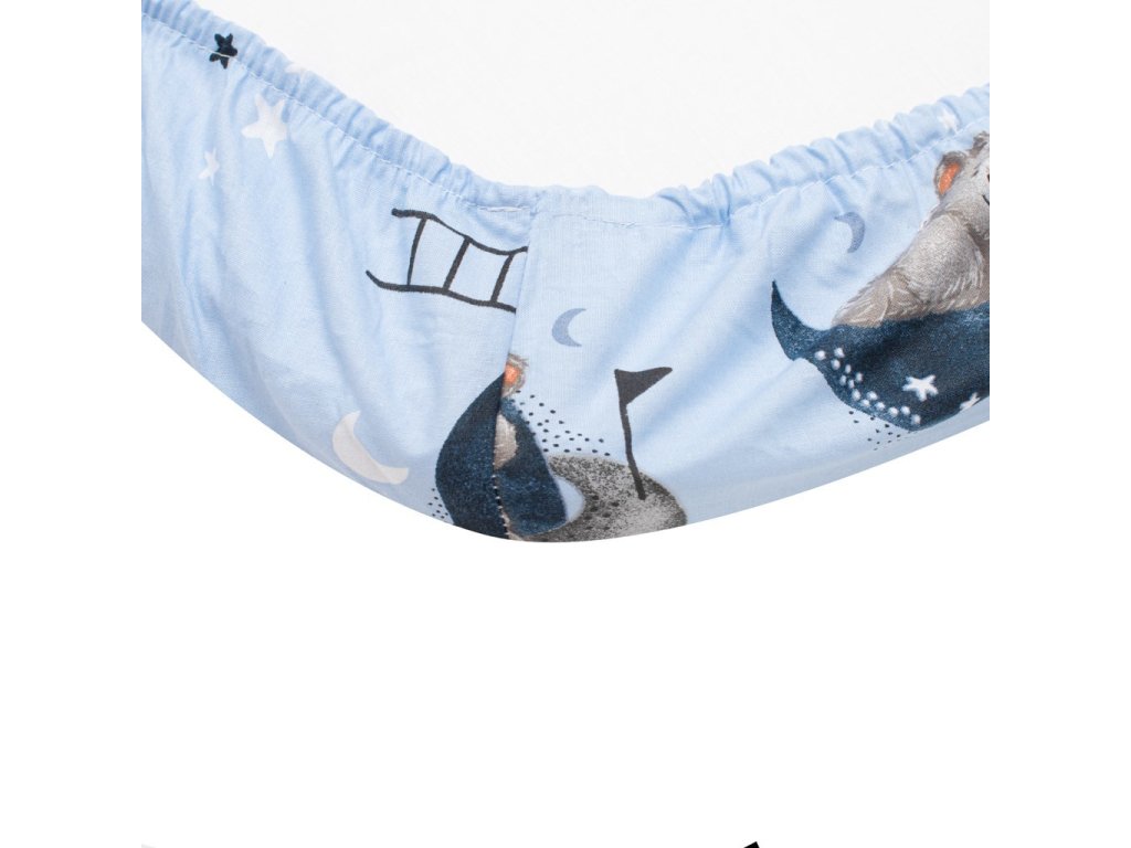 Bavlněné prostěradlo New Baby Teddy bear in space je vyrobeno z hladké a na dotek příjemné bavlněné látky-tkanina. Krásny detský motív, polahodí detským očičkám. Všitá gumička zabraňuje sklouznutí z matrace, zaručuje správné napnutí prostěradla a umožňuje přizpůsobit se jakémukoli tvaru. Prostěradlo je vhodné pro matrace o rozměrech 35 × 75 cm. Prostěradlo je klasické bavlněné, které není elastické a proto má roměry 50x80 cm, aby krásně sedělo na celé matraci i ze spodní strany.
