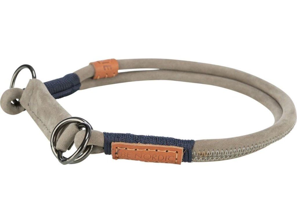 BE NORDIC kulatý polostahovací kožený obojek, šedá