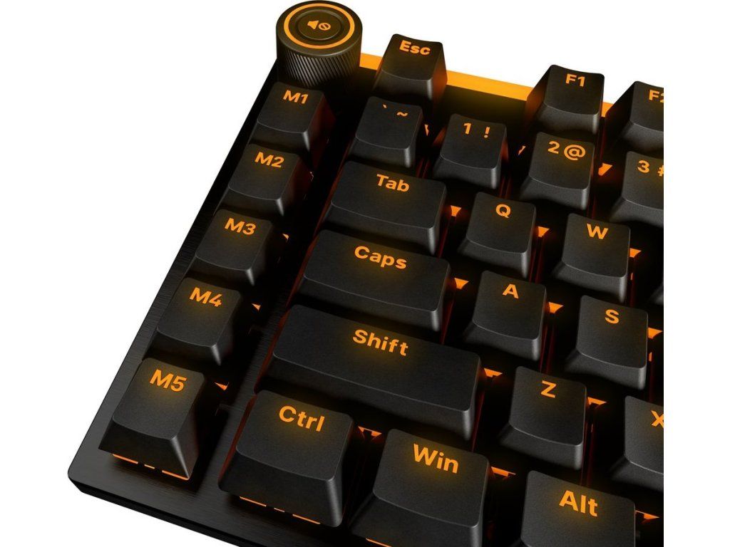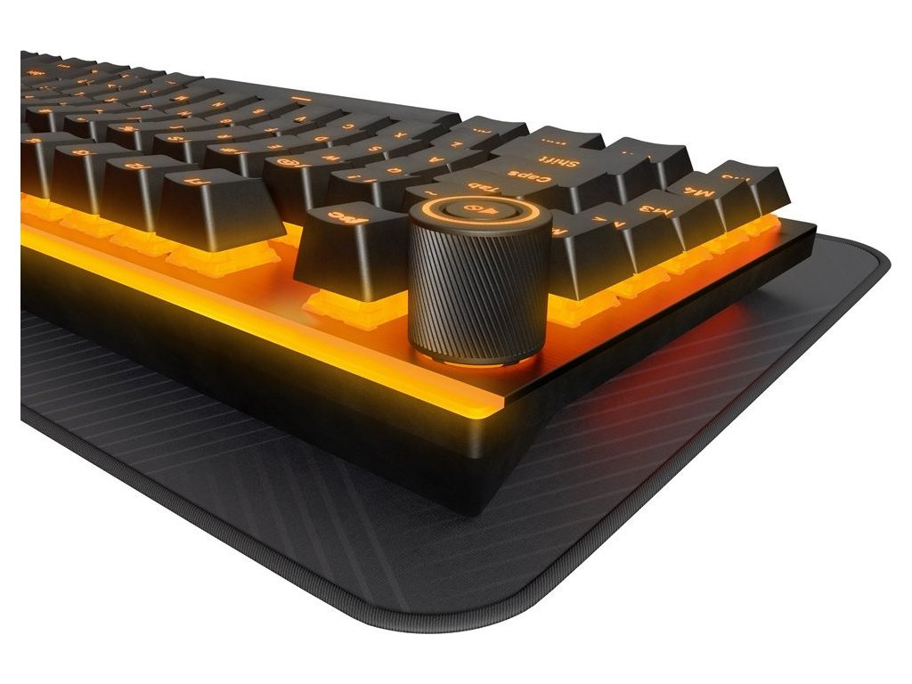 Součástí klávesnice je numerický blok pro snadné zadávání číselných znaků i praktické hliníkové 3D kolečko pro ovládání hudby, videí nebo makrokláves. V základním nastavení umožňuje upravit hlasitost nebo vypnout zvuk. Celkem 5 mechanických makrokláves můžete naprogramovat pro další média, nebo jim přiřadit specifickou funkci prodanou hru.