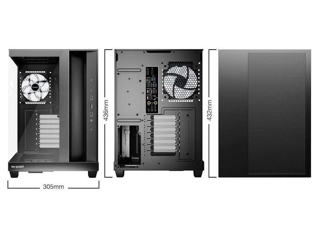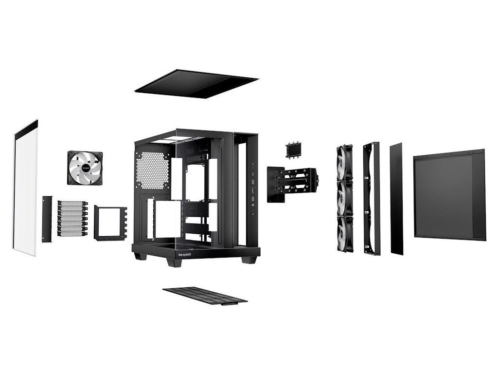 Skříň Be quiet! LIGHT BASE 500 LX poskytuje prostorné a stylové útočiště pro vaše našlapané komponenty. Průhledný boční a čelní panel umožní sledovat komponenty v celé jejich naleštěné kráse. Uvnitř skříně najdete 4 předinstalované 120mm PWM ventilátory Light Wings LX, které zajišťují tichý chod, efektivní průtok vzduchu a optimální chlazení. Díky šikmému výsuvnému rámečku pro ventilátor proudí vzduch přímo na grafickou kartu a postará se například o chlazení výkonných herních sestav.