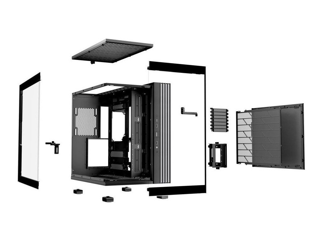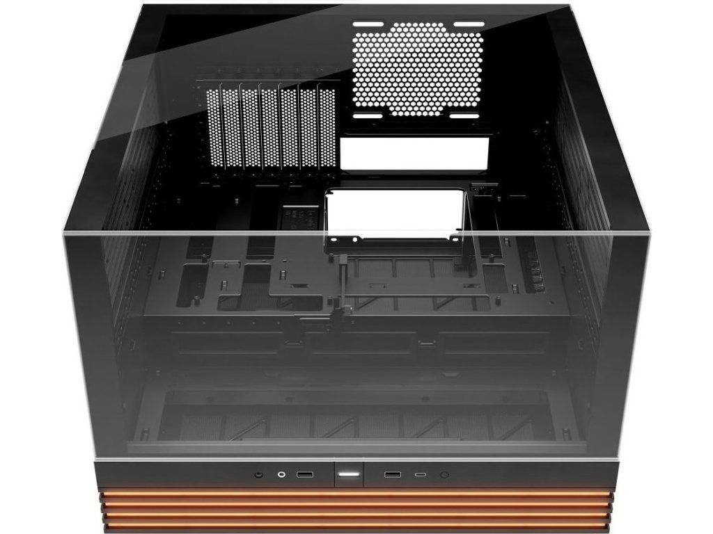 Unikátní počítačová skříň s průhlednou bočnicí i předním panelem formátu Middle Tower nabízí dostatek prostoru pro montáž většiny dostupných komponent. Hlavní předností této skříně je možnost rychlé změny její orientace díky systému odnímatelných a přemístitelných nožiček. Skříň je dodávána bez předinstalovaných ventilátorů, nabízí ale až 10 pozic pro ventilátory a dva integrované rozbočovače ventilátorů a ARGB. Na předním panelu se nachází dva porty USB 3.0, jeden port USB-C, sluchátkový výstup a audio vstup pro mikrofon. Herní design ještě doplňuje elegantní ARGB osvětlení lemující strany skříně, díky čemuž je viditelné bez ohledu na to, v jaké orientaci skříň používáte. Ve skříni je dostatek prostoru pro chladič CPU do výšky až 170 mm a grafickou kartu o délce až 400 mm. Důmyslné řešení umožňuje pohodlné umístění až 360 mm dlouhého výměníku vodního chlazení na horní nebo spodní straně. Potěší také přítomnost prachových filtrů či integrovaná podpěra grafické karty. Skříň je dodávána bez zdroje.