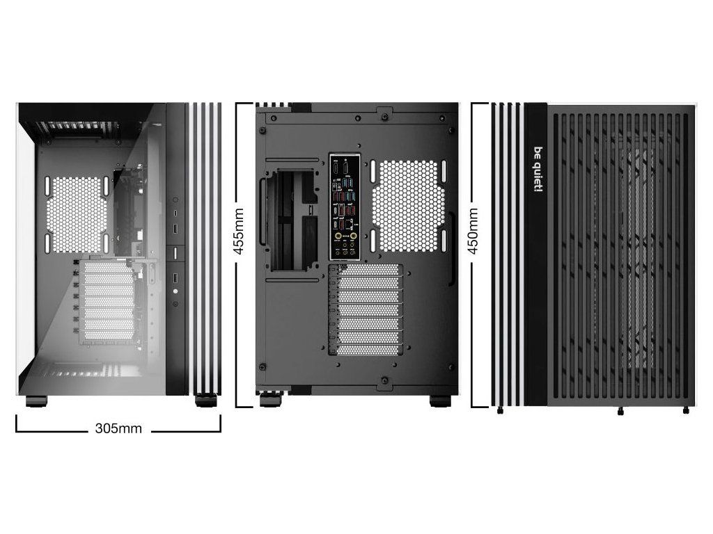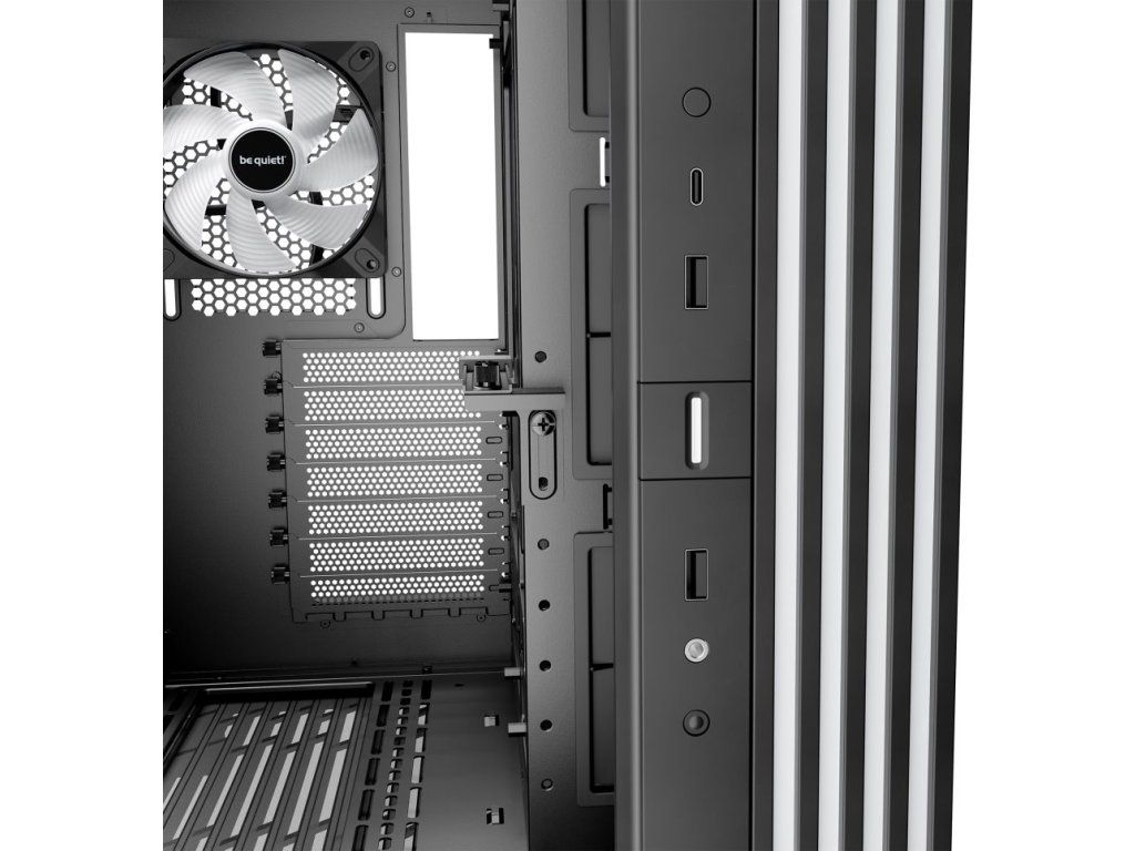Další předností je podpora přemístitelných nožiček, díky čemuž můžete PC otočit a umístit ve svislé i vodorovné poloze. PC skříň Be quiet! LIGHT BASE 600DX nabízí až 10 pozic pro ventilátory a 2 integrované rozbočovače ventilátorů s ARGB. Po této stránce je skříň mimořádně univerzální a ve spojení s prostorem uvnitř vám umožní vytvořit rozmanité konfigurace s extrémně výkonnými grafickými kartami, radiátory nebo základními deskami ve formátu ATX, Micro ATX, Mini-ITX.