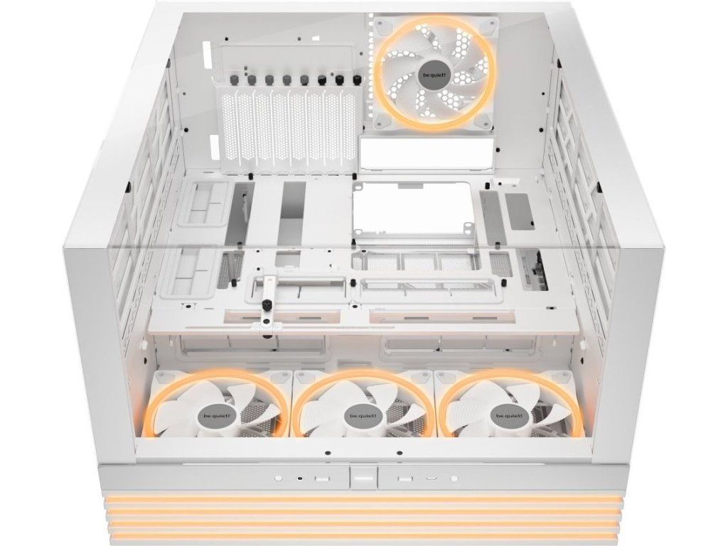 Další předností je podpora přemístitelných nožiček, díky čemuž můžete PC otočit a umístit ve svislé i vodorovné poloze. PC skříň Be quiet! LIGHT BASE 900FX je osazena 4 předinstalovanými ventilátory s ARGB posvícením. Light Wings ventilátory svým designem lopatek podporují optimalizované proudění vzduchu a snižují turbulence pro dosažení tichého provozu. Prostor uvnitř skříně vám umožní vytvořit rozmanité konfigurace s extrémně výkonnými grafickými kartami, radiátory nebo základními deskami ve formátu E-ATX, XL-ATX, ATX, Micro ATX, Mini-ITX.
