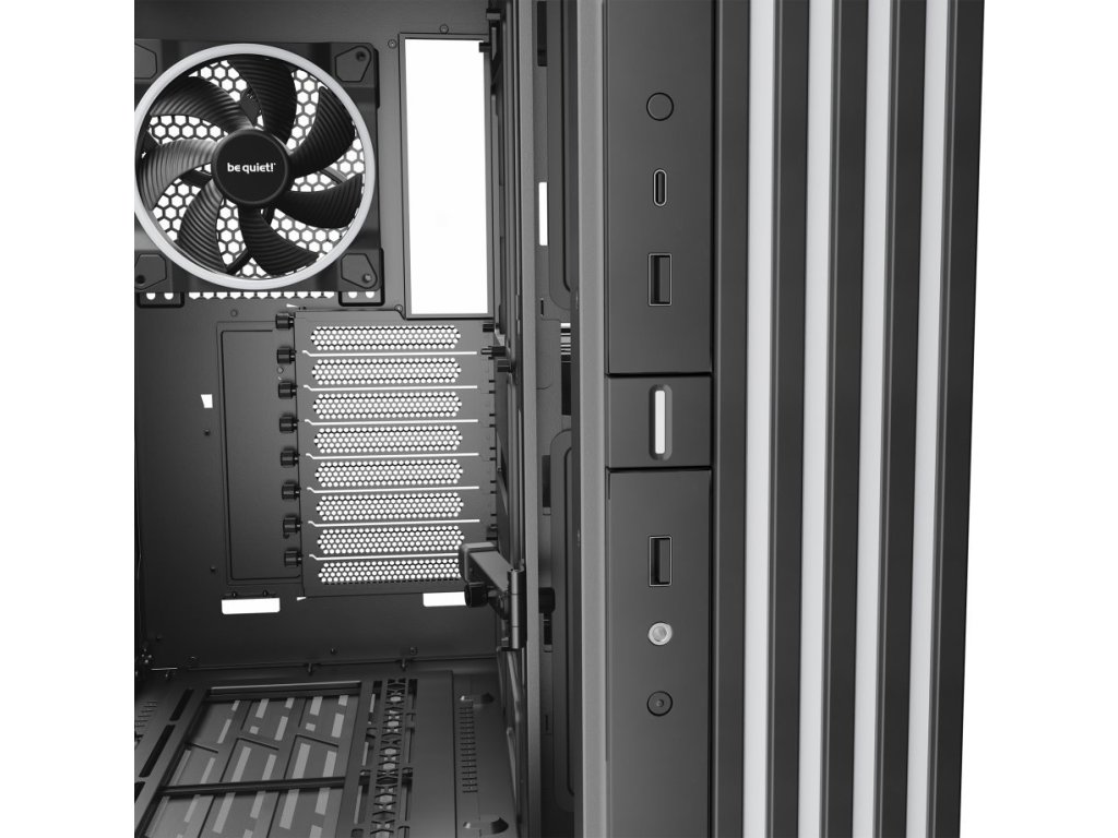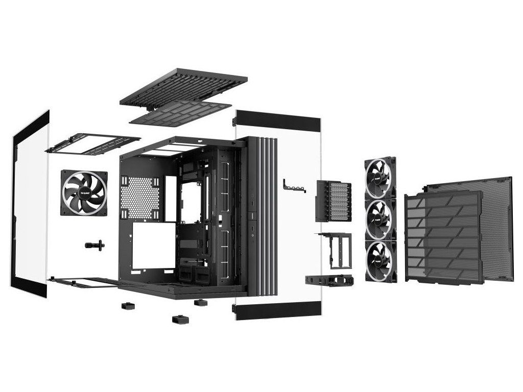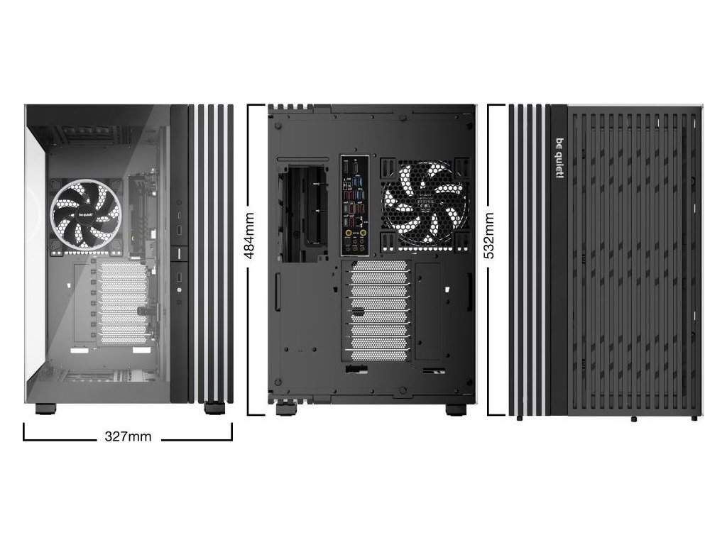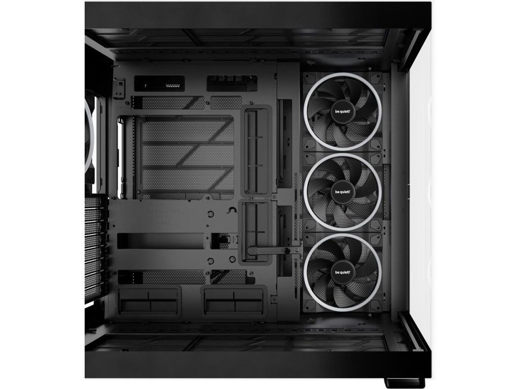 Další předností je podpora přemístitelných nožiček, díky čemuž můžete PC otočit a umístit ve svislé i vodorovné poloze. PC skříň Be quiet! LIGHT BASE 900FX je osazena 4 předinstalovanými ventilátory s ARGB posvícením. Light Wings ventilátory svým designem lopatek podporují optimalizované proudění vzduchu a snižují turbulence pro dosažení tichého provozu. Prostor uvnitř skříně vám umožní vytvořit rozmanité konfigurace s extrémně výkonnými grafickými kartami, radiátory nebo základními deskami ve formátu E-ATX, XL-ATX, ATX, Micro ATX, Mini-ITX.