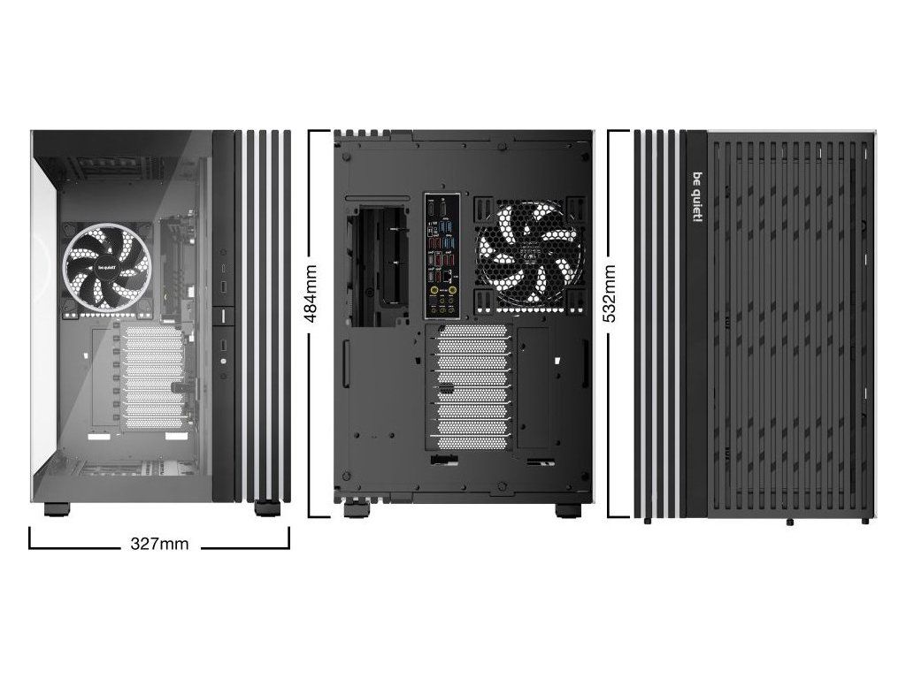 Počítačová skříň Be quiet! LIGHT BASE 900FX moderního střihu, která svými rozměry a funkčností potěší všechny náročné uživatele a kutily. Kombinuje stylový vzhled s průhlednými panely spolu s efektivním chlazením. Ve výsledku pak získáte skvěle vypadající PC systém s vysokým výkonem a tichým provozem. Uplatní se při tvorbě herní sestavy, multimediálního centra i pracovní stanice. Pro variabilní konfiguraci je zde místa víc než dost. Velké průhledné panely na přední a boční straně poskytují panoramatický pohled na komponenty uvnitř skříně. Fanoušky osvětlení potěší přítomnost ARGB LED pásku.