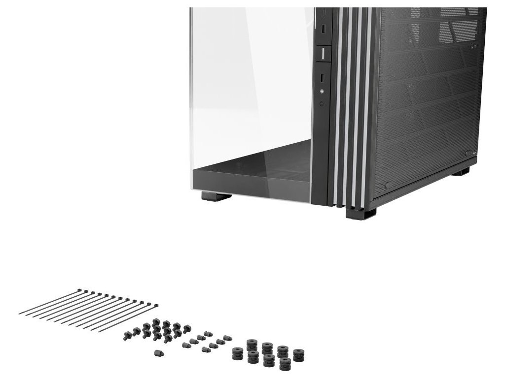 Unikátní počítačová skříň s průhlednou bočnicí i předním panelem formátu Middle Tower nabízí dostatek prostoru pro montáž většiny dostupných komponent. Hlavní předností této skříně je možnost rychlé změny její orientace díky systému odnímatelných a přemístitelných nožiček. Skříň je dodávána se čtyřmi předinstalovanými 140mm ventilátory s ARGB podsvícením. K tomu nabízí dalších až 6 pozic pro ventilátory a dva integrované rozbočovače ventilátorů a ARGB. Na předním panelu se nachází dva porty USB 3.0, jeden port USB-C, sluchátkový výstup a audio vstup pro mikrofon. Herní design ještě doplňuje elegantní ARGB osvětlení lemující strany skříně, díky čemuž je viditelné bez ohledu na to, v jaké orientaci skříň používáte. Ve skříni je dostatek prostoru pro chladič CPU do výšky až 190 mm a grafickou kartu o délce až 495 mm. Důmyslné řešení umožňuje pohodlné umístění až 420 mm dlouhého výměníku vodního chlazení na horní nebo spodní straně. Potěší také přítomnost prachových filtrů či integrovaná podpěra grafické karty. Skříň je dodávána bez zdroje.
