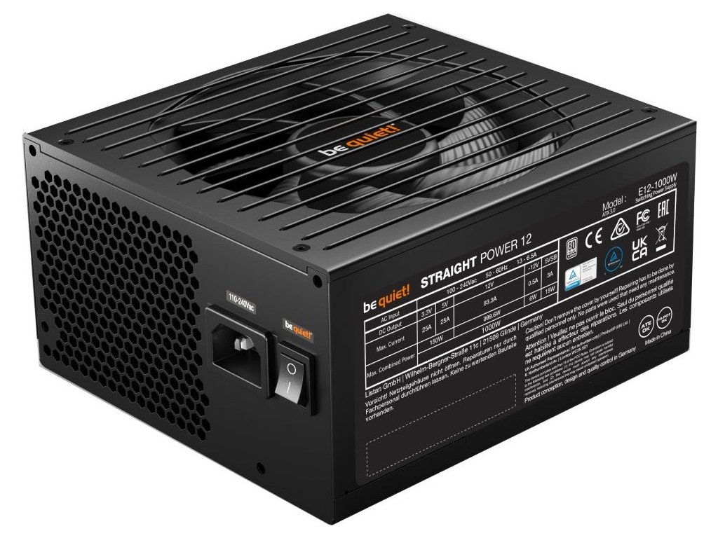 Be quiet! STRAIGHT POWER 12 PlatinumNapájecí zdroj je osazen tichým 135 mm ventilátorem s FDB ložiskem. Účinnost zdroje je až 93,9 %. Kabely jsou plně odpojitelné.