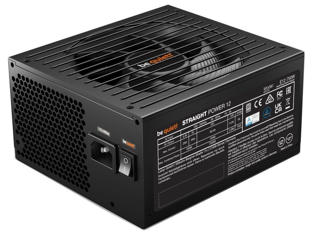 Be quiet! STRAIGHT POWER 12 PlatinumNapájecí zdroj je osazen tichým 135 mm ventilátorem s FDB ložiskem. Účinnost zdroje je až 93,8 %. Kabely jsou plně odpojitelné.