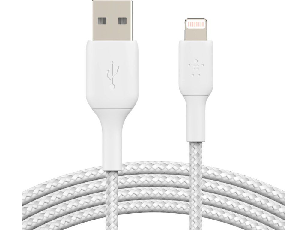 BELKIN kabel oplétaný USB-A - Lightning, 1m, bílý
