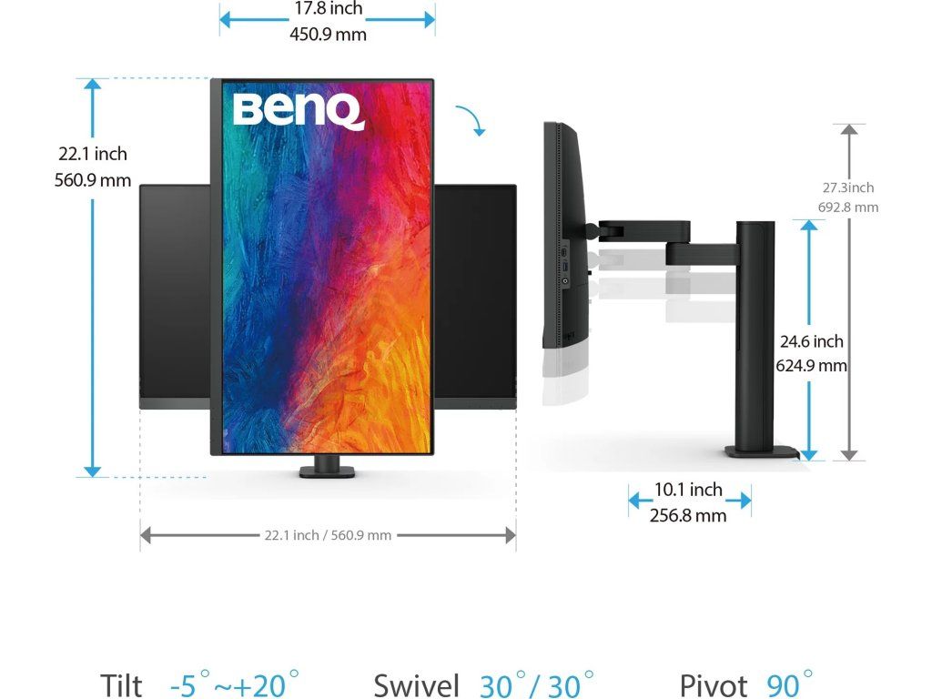 Mezi další funkce patří například KVM Switch pro jednoduché přepínání mezi systémy pomocí ovladače Hotkey Puck G2 a zvýšení pracovní efektivity. Potěší také přítomnost USB-C portu pro přenos obrazu, zvuku, dat a napájení jediným kabelem. Ergonomická konstrukce v podobě netradičního ramena vám umožní upevnit monitor BenQ DesignVue PD2705UA k desce stolu a nastavit do ideální polohy. Samozřejmostí jsou technologie pro ochranu očí, které snižují blikání displeje a intenzitu modrého světla.