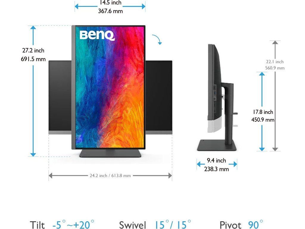 Monitor s úhlopříčkou 27" a rozlišením 3840 × 2160 bodů nabízí pokrytí 99% sRGB barevné palety a certifikaci VESA DisplayHDR 400. Disponuje kontrastním poměrem 1200 : 1, dobou odezvy 5 ms a jasem 350 cd/m2. Pohodlné sledování zajišťují široké pozorovací úhly 178° horizontálně i vertikálně. Předností je také možnost nastavení optimální orientace monitoru díky funkci Pivot a integrovaný USB hub. K dispozici jsou také dva porty USB-C, z nichž jeden kromě vysokorychlostního přenosu videa a dat umožňuje napájení připojených zařízení až do 90 W. Ozvučení zajišťují stereo reproduktory s celkovým výkonem 5 W. Integrovaný KVM přepínač umožňuje ovládat dvě zařízení připojená k monitoru prostřednictvím jediné klávesnice a myši.