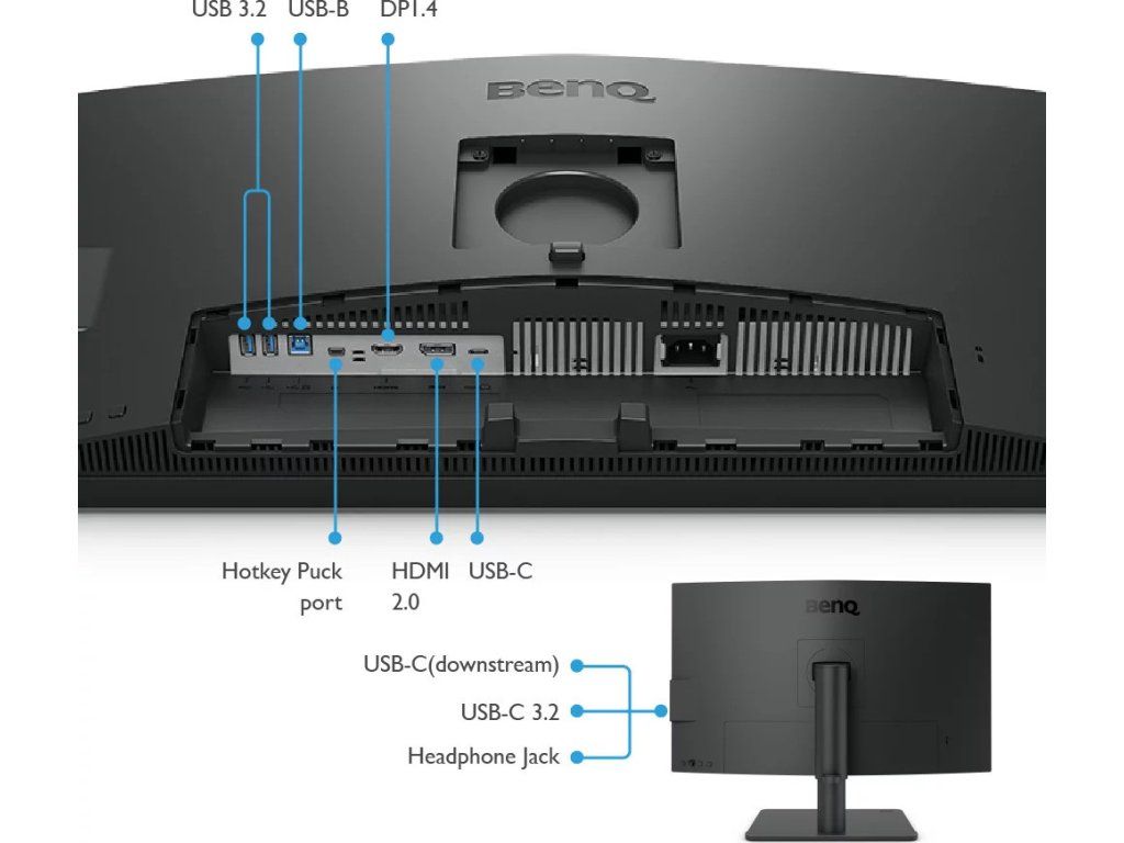 Součástí balení jsou kabely DisplayPort, HDMI, USB a USB-C a dálkový ovladač Hotkey Puck G2, který slouží k rychlému přepínání nastavitelných módů obrazu bez nutnosti vstupu do menu. Kromě několika funkčních tlačítek obsahuje tento ovladač také otočné kolečko, které umožňuje rychlou úpravu jasu, kontrastu nebo hlasitosti.