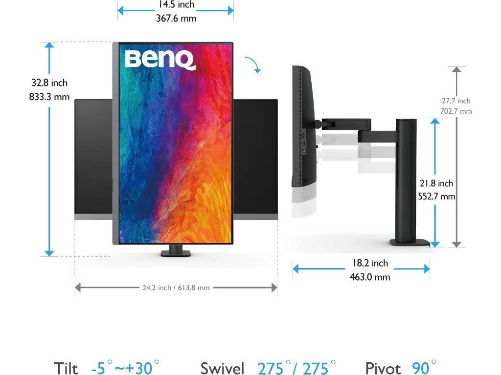 Monitor s úhlopříčkou 27" a rozlišením 3840 × 2160 bodů nabízí pokrytí 99% sRGB barevné palety a certifikaci VESA DisplayHDR 400. Disponuje kontrastním poměrem 1200 : 1, dobou odezvy 5 ms a jasem 250 cd/m2. Pohodlné sledování zajišťují široké pozorovací úhly 178° horizontálně i vertikálně. Předností je také možnost nastavení optimální orientace monitoru díky ergonomickému ramenu, funkci Pivot a integrovaný USB hub. K dispozici jsou také dva porty USB-C, z nichž jeden kromě vysokorychlostního přenosu videa a dat umožňuje napájení připojených zařízení až do 65 W. Ozvučení zajišťují stereo reproduktory s celkovým výkonem 5 W. Integrovaný KVM přepínač umožňuje ovládat dvě zařízení připojená k monitoru prostřednictvím jediné klávesnice a myši.