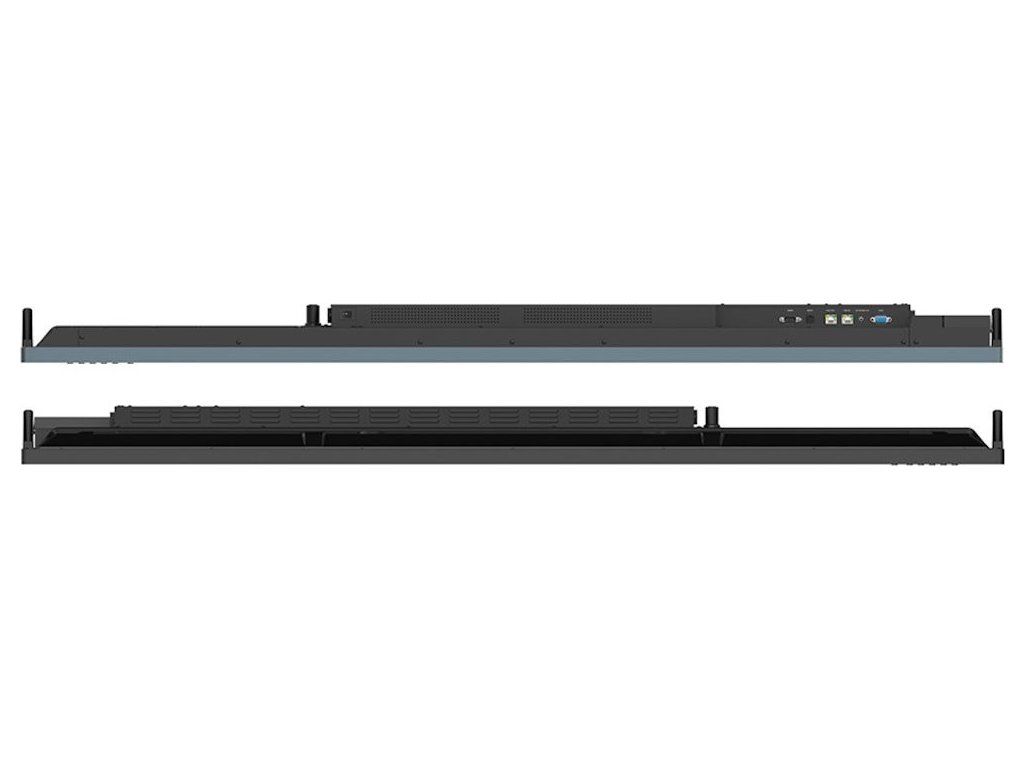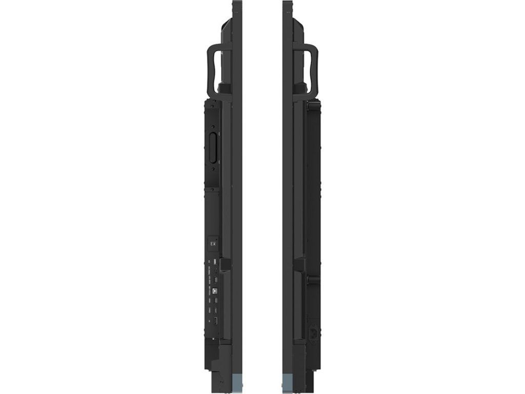 Rozhraní: 3× HDMI vstup, 1× HDMI výstup, 1× DisplayPort vstup, 1× VGA vstup, 2× audio vstup, 1× audio výstup, 1× SPDIF optický výstup zvuku, 2× USB 2.0, 2× USB 3.0, 1× USB-C, 1× USB-C (PD 65 W), 2× USB-B pro dotykové ovládání, 1× slot-in PC (OPS), 2× RJ-45, 1× RS-232, 1× slot pro SD kartu