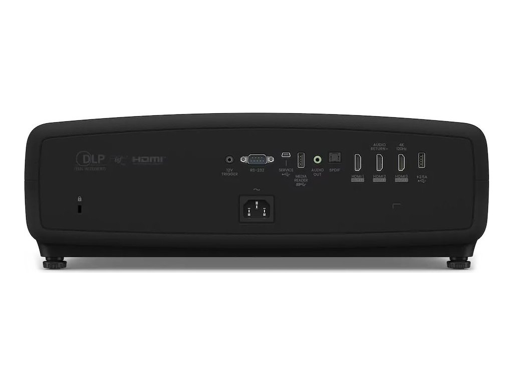 Rozhraní: 3× HDMI, 2× USB 2.0, 1× audio výstup, 1× optický audio výstup, mini USB-B (pro servisní účely), 1× RS-232, 1× 12V Trigger