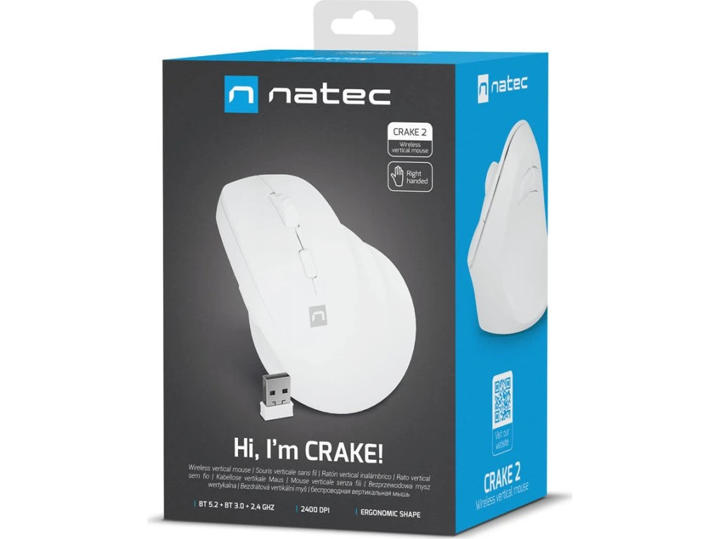 Prémiový CZ popisek: https://opisy.impakt.com.pl/download-template/56885/natec/natec-cz__mysz-wertykalna-natec-crake-2-bezprzewodowa-2400dpi-bluetooth-52-24ghz-biaa
