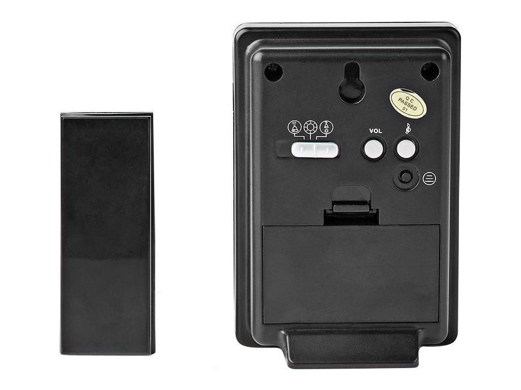 Nedis DOORB212BKBezdrátový zvonek s dosahem až 300 m při přímé viditelnosti. Po stisknutí tlačítka na zvonku se rozezní jedno ze 36 nastavitelných vyzvánění s hlasitostí až 80 dB. Napájení zvonku je realizováno dvěma AA bateriemi, napájení vysílače pak baterií typu CR2032.
