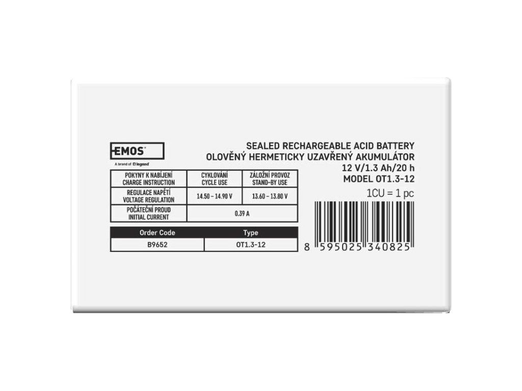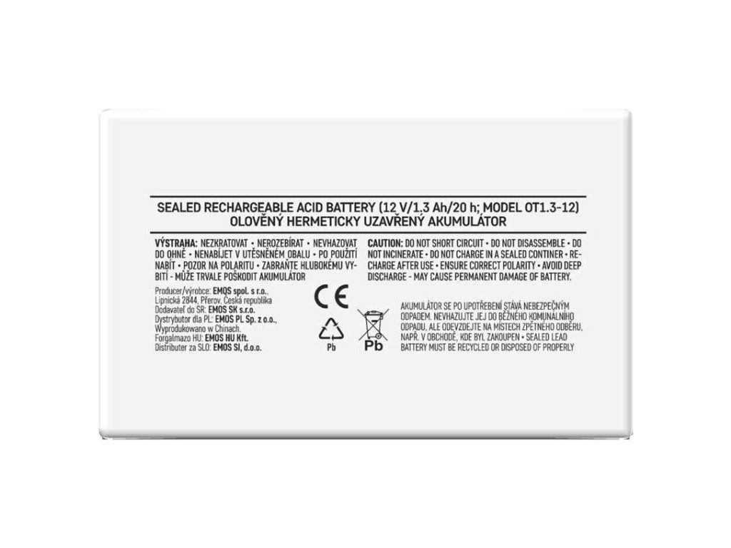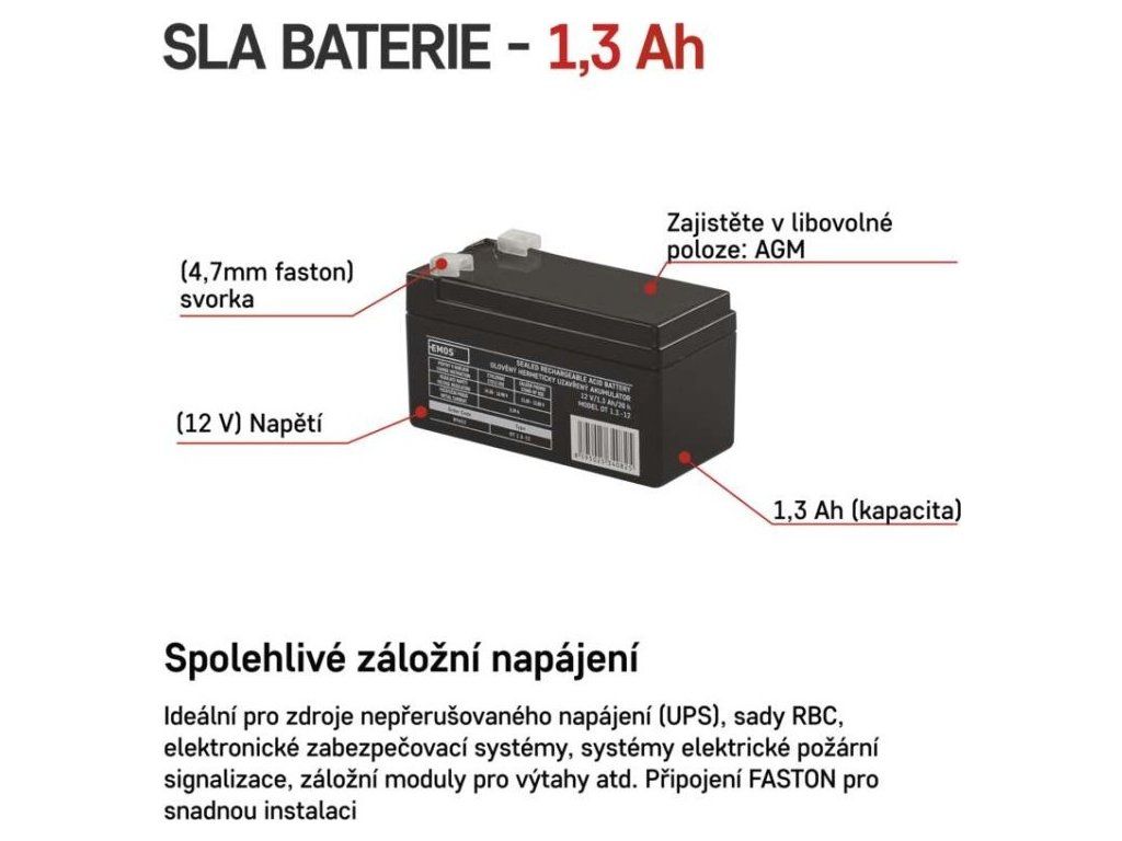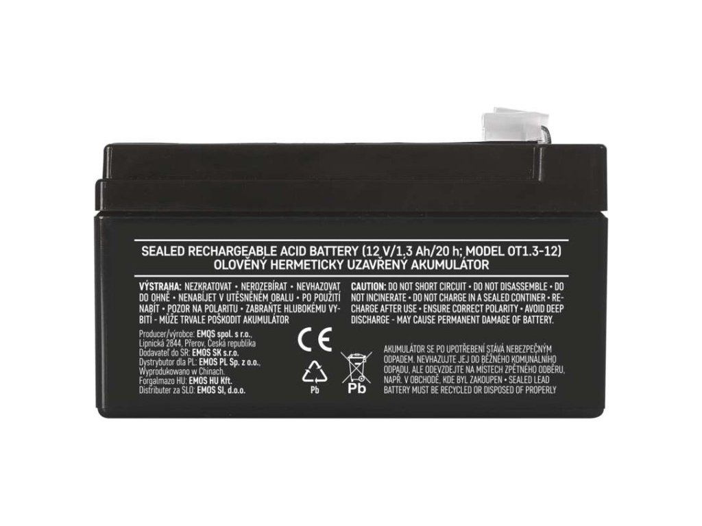 Akumulátor EMOS je vhodný jako náhradní baterie pro elektronické systémy - EZS, EPS, záložní systémy výtahů apod.Bezúdržbový, ventilem řízený olověný akumulátor v provedení AGM umožňuje být používán v libovolné poloze. Optimální životnost v záložních systémech je 5 let.Nabíjení baterie musí být prováděno vhodným napájecím zdrojem nebo nabíječem, který má hodnotu nabíjecího napětí 14,4 V pro 12 V akumulátory a 7,2 V pro 6 V akumulátory. V případě, že nabíječ nebo napájecí zdroj nemá tyto parametry, tak dochází k neúplnému nabíjení a dochází k tomu, že akumulátor bude rychle spotřebován a v krajním případě zničen. V tomto případě nelze uznat reklamaci akumulátoru.