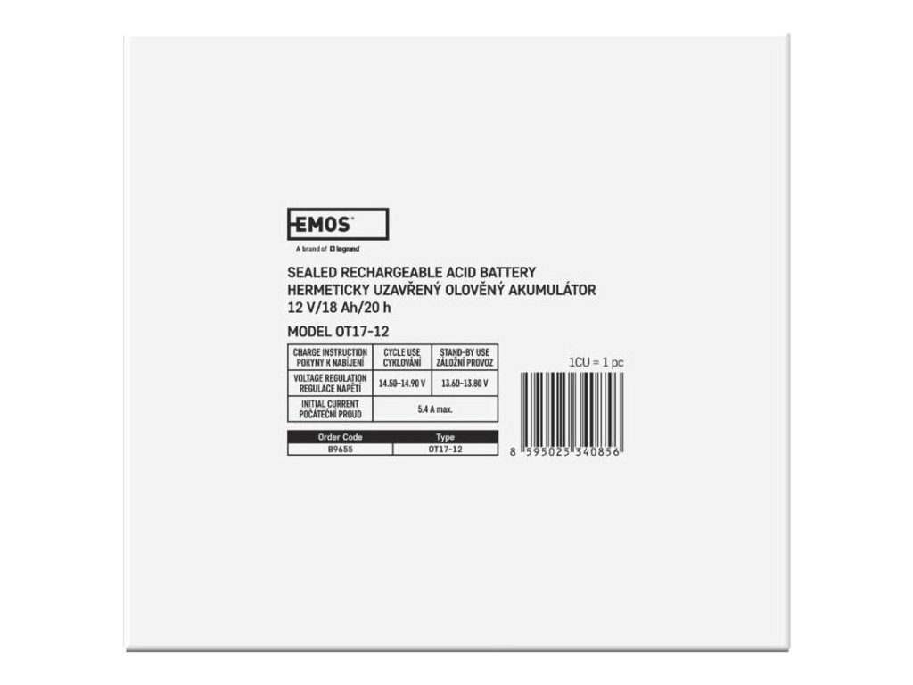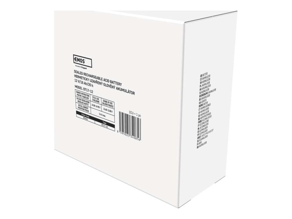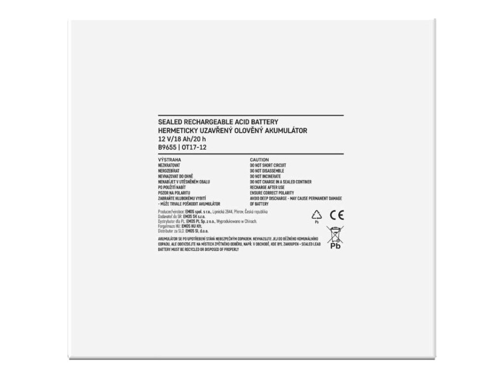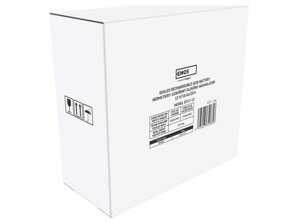 Akumulátor EMOS je vhodný jako náhradní baterie pro záložní zdroje UPS, RBC kity, elektronické systémy EZS, EPS, záložní systémy výtahů apod. Bezúdržbový, ventilem řízený olověný akumulátor v provedení AGM umožňuje být používán v libovolné poloze. Optimální životnost v záložních systémech je 5 let.Nabíjení baterie musí být prováděno vhodným napájecím zdrojem nebo nabíječem, který má hodnotu nabíjecího napětí 14,4 V pro 12 V akumulátory a 7,2 V pro 6 V akumulátory. V případě, že nabíječ nebo napájecí zdroj nemá tyto parametry, tak dochází k neúplnému nabíjení a dochází k tomu, že akumulátor bude rychle spotřebován a v krajním případě zničen. V tomto případě nelze uznat reklamaci akumulátoru.