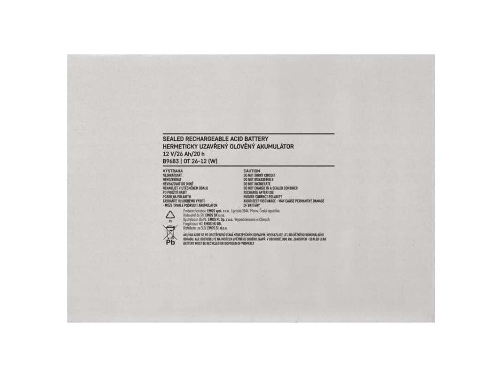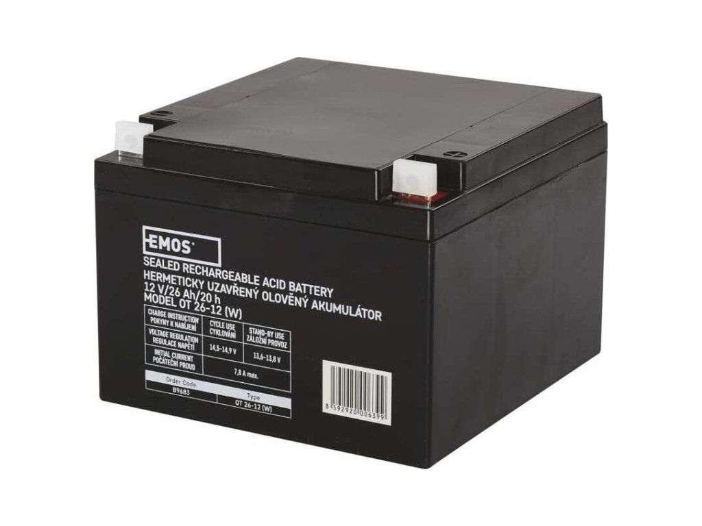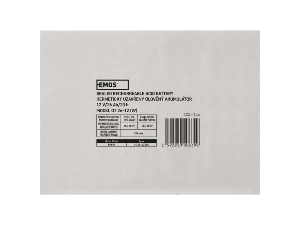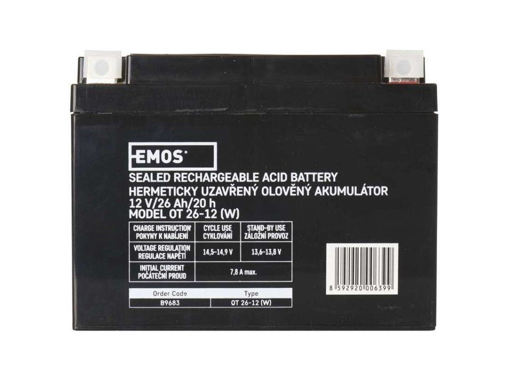 Akumulátor EMOS je vhodný jako náhradní baterie pro záložní zdroje UPS, RBC kity, nouzové osvětlení elektronické systémy EZS, EPS apod.Bezúdržbový, ventilem řízený olověný akumulátor v provedení AGM umožňuje být používán v libovolné poloze. Optimální životnost v záložních systémech je 5 let.Nabíjení baterie musí být prováděno vhodným napájecím zdrojem nebo nabíječem, který má hodnotu nabíjecího napětí 14,4 V pro 12 V akumulátory a 7,2 V pro 6 V akumulátory. V případě, že nabíječ nebo napájecí zdroj nemá tyto parametry, tak dochází k neúplnému nabíjení a dochází k tomu, že akumulátor bude rychle spotřebován a v krajním případě zničen. V tomto případě nelze uznat reklamaci akumulátoru.