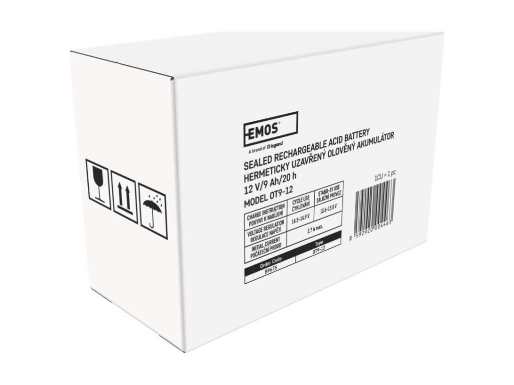 Akumulátor EMOS je vhodný jako náhradní baterie pro záložní zdroje UPS, RBC kity apod. Bezúdržbový, ventilem řízený olověný akumulátor v provedení AGM umožňuje být používán v libovolné poloze. Optimální životnost v záložních systémech je 5 let.Nabíjení baterie musí být prováděno vhodným napájecím zdrojem nebo nabíječem, který má hodnotu nabíjecího napětí 14,4 V pro 12 V akumulátory a 7,2 V pro 6 V akumulátory. V případě, že nabíječ nebo napájecí zdroj nemá tyto parametry, tak dochází k neúplnému nabíjení a dochází k tomu, že akumulátor bude rychle spotřebován a v krajním případě zničen. V tomto případě nelze uznat reklamaci akumulátoru.