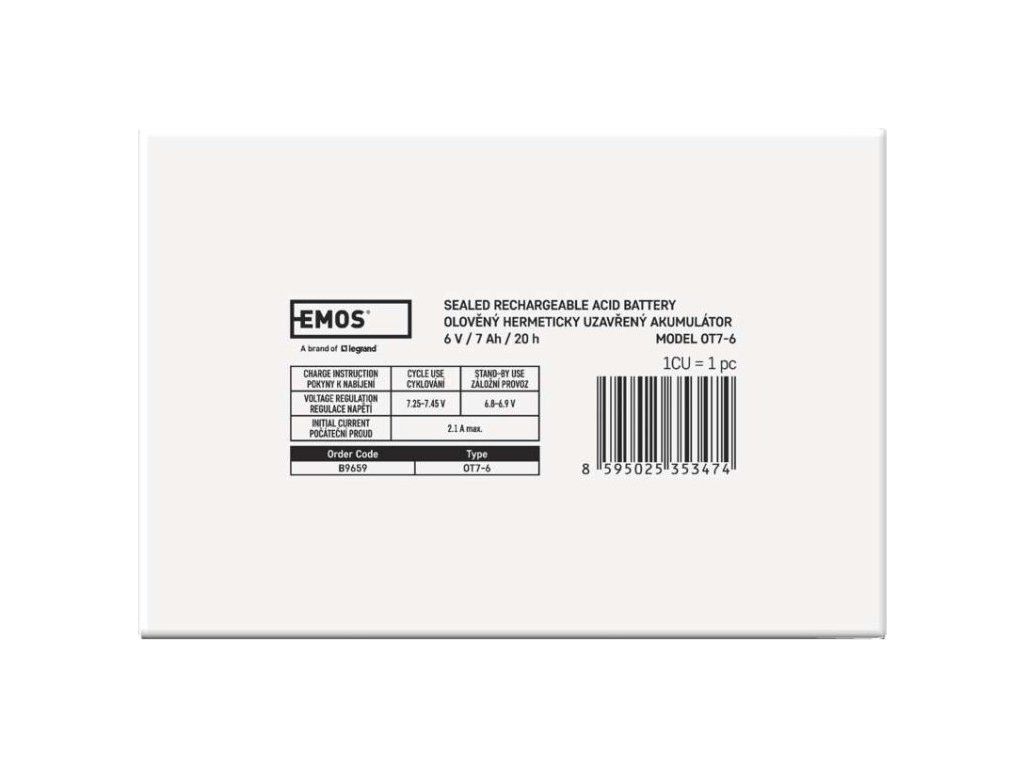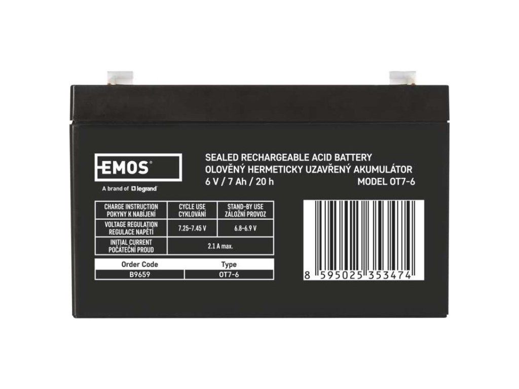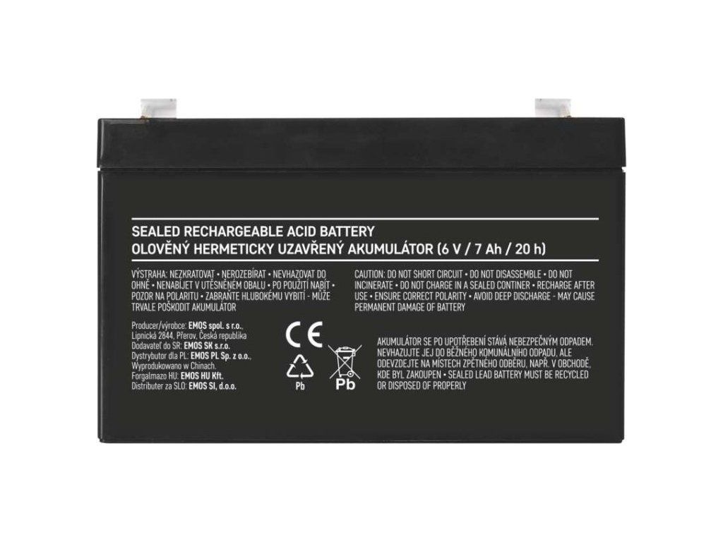 Bezúdržbový olověný akumulátor 6 V/7 Ah, faston 4,7 mm