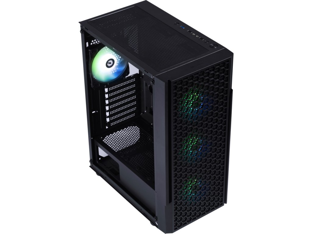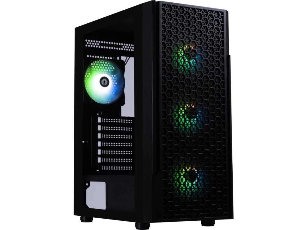 Herní počítačová skříň nabízí stylovou prosklenou bočnici a poloprůhledný přední panel. Skříň je osazena čtyřmi ventilátory o velikosti 120 mm s FRGB podsvícením. Potěší také možnost rozšíření o další 2 ventilátory. Důmyslné řešení umožňuje pohodlné umístění až 360 mm dlouhého výměníku vodního chlazení na přední straně. Ve skříni je dostatek prostoru pro chladič CPU do výšky až 165 mm a grafickou kartu o délce až 330 mm. Na horním panelu se nachází dva USB 2.0 porty, jeden port USB 3.0, sluchátkový výstup a vstup pro mikrofon. Samozřejmostí jsou také prachové filtry. Skříň je dodávána bez zdroje.