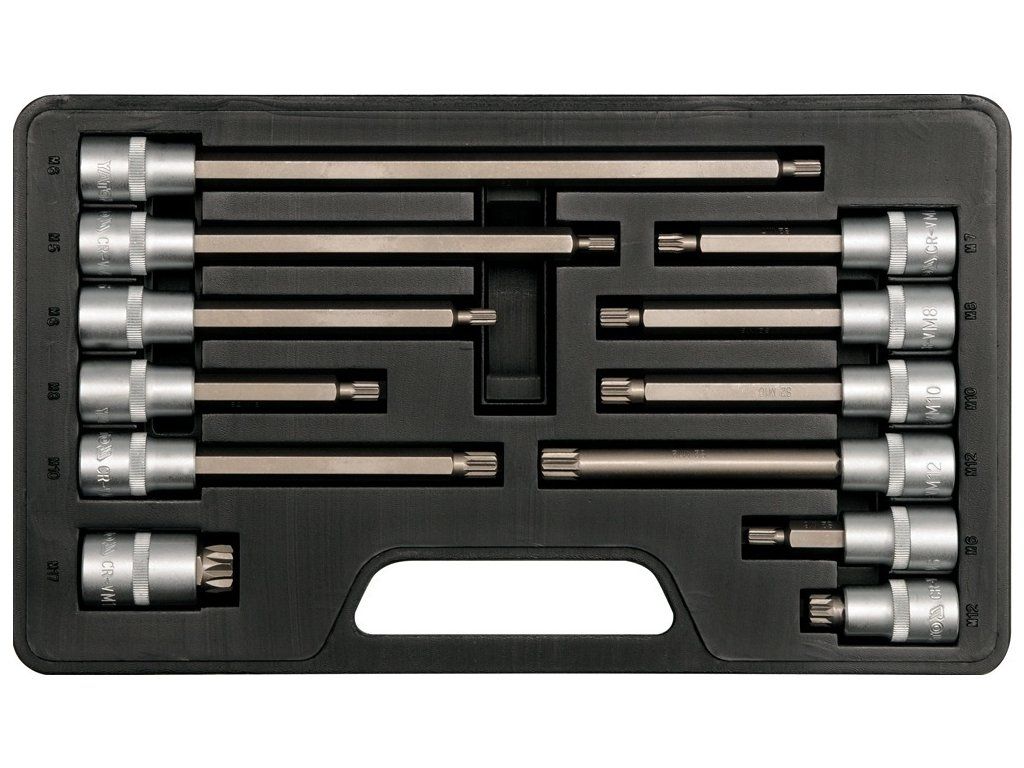 Sada kvalitních zástrčných prodloužených klíčů XZN s bitem pevně spojeným s hlavicí se čtyřhranem 1/2".