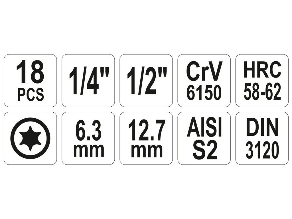 • Nástrčné hlavice torx sada 18 kusů T10-T60 Yato