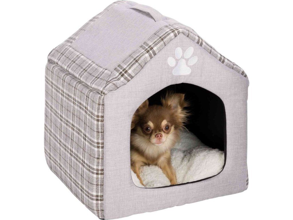 Boudička SILAS s polštářem, 40 x 45 x 40 cm, tkaná látka/polyester, šedá/krémová