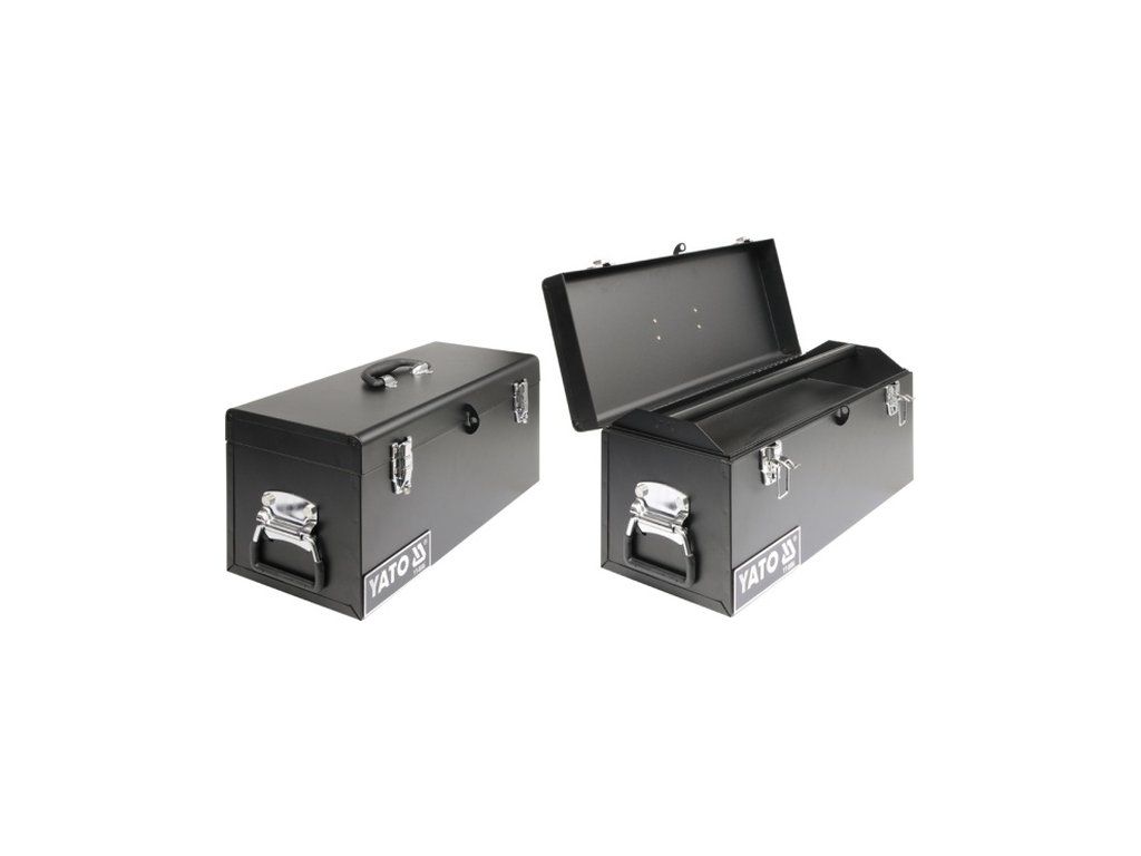 Kovový box na uložení nářadí, s madlem pro snadné přenášení.