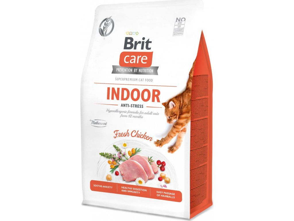 Bezobilné granule od BRIT CARE Indoor Anti-stress chrání kočku před stresem