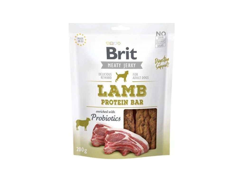 Brit Jerky Lamb Protein Bar je zdravým, masitým a chutným doplňkem pravidelné stravy vašeho psa. Dávejte svému psovi denně za odměnu nebo jako pamlsek během společných chvilek v průběhu dne. Nenahrazujte běžnou stravu, abyste zajistili denní příjem živin. Přesto, že je produkt velmi chutný, nepřekračujte dávku a cvičte se svým psem.