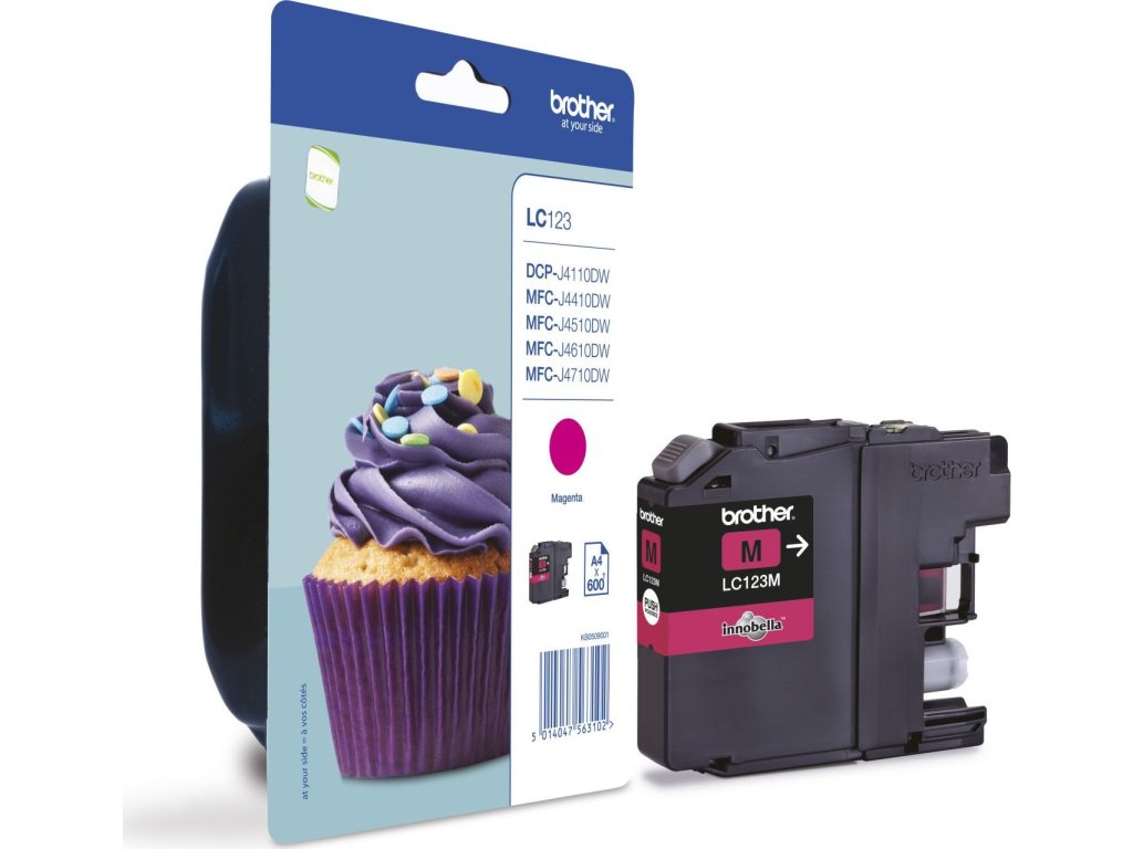 Cartridge BROTHER LC-123M je určena exkluzivně pro tiskárny BROTHER DCP-J4110DW, MFC-J4410DW a MFC-J4510DW. Nabízí kvalitu originální cartridge a životnost až 600 stran. Jde o zásobník s červenou barvou typu magenta, tvořící jednu ze základních tiskařských odstínů.