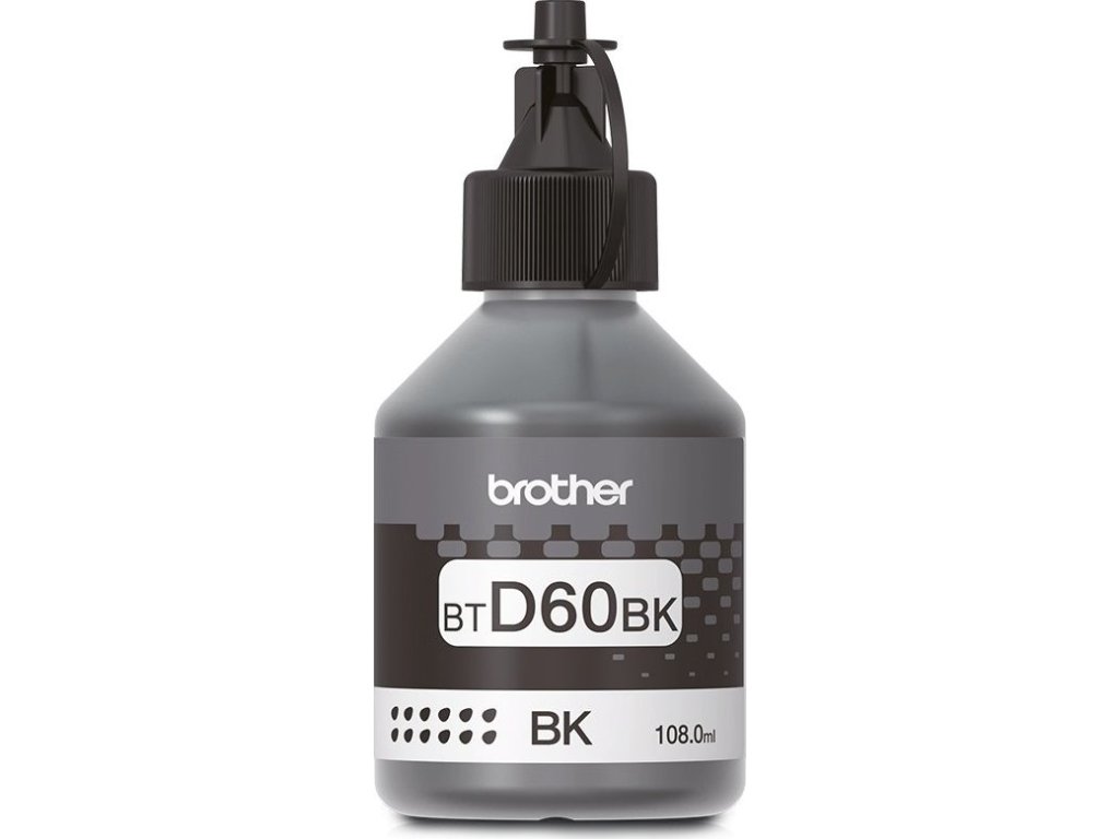 Originální Brother BTD60BK černá inkoustová lahvička Brother s vysokou výtěžností. Tisk až 6 500 stránek.