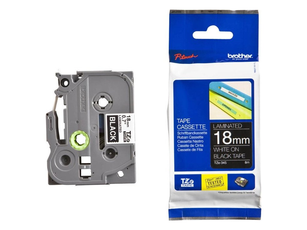 Originální kazeta s laminovanou páskou TZe-345 kompatibilní s širokou řadou tiskáren Brother P-touch je zvláště všestranná díky své snadno čitelné bílé a černé barvě - ideální pro domácnost, kancelář a další pracoviště.
