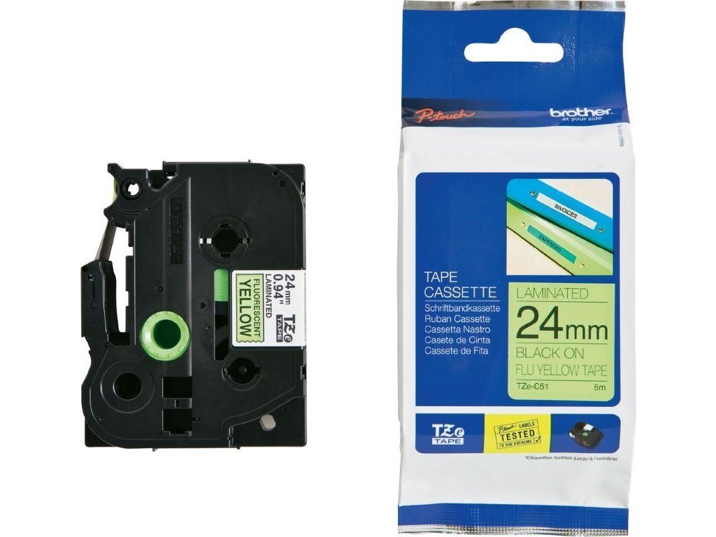 Originální kazeta s páskou Brother TZe-C51 - černý tisk na fluorescenční žluté, šířka 24 mm