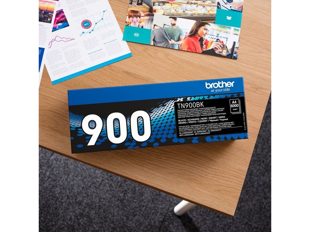 Výtěžnost toneru TN900BK se pohybuje na hranici až 6000 stran při 5% pokrytí. Důvody proč používat originální příslušenství jsou již klasické jako u ostatních výrobců, zachování záruky na zařízení, prodloužení životnosti a udržení standardně vysoké kvality výtisků.