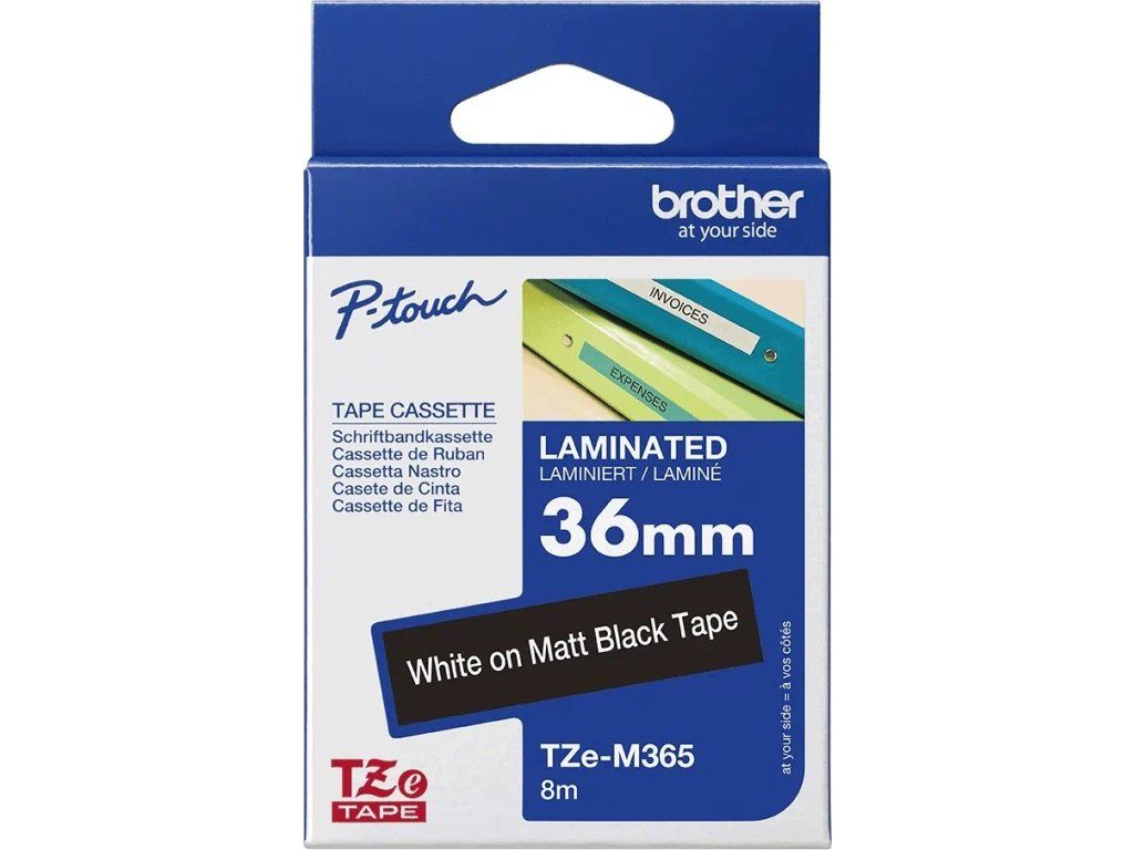 Brother TZe-M365 matná laminovaná páska, bílý tisk na matném černém podkladu – šířka 36 mm