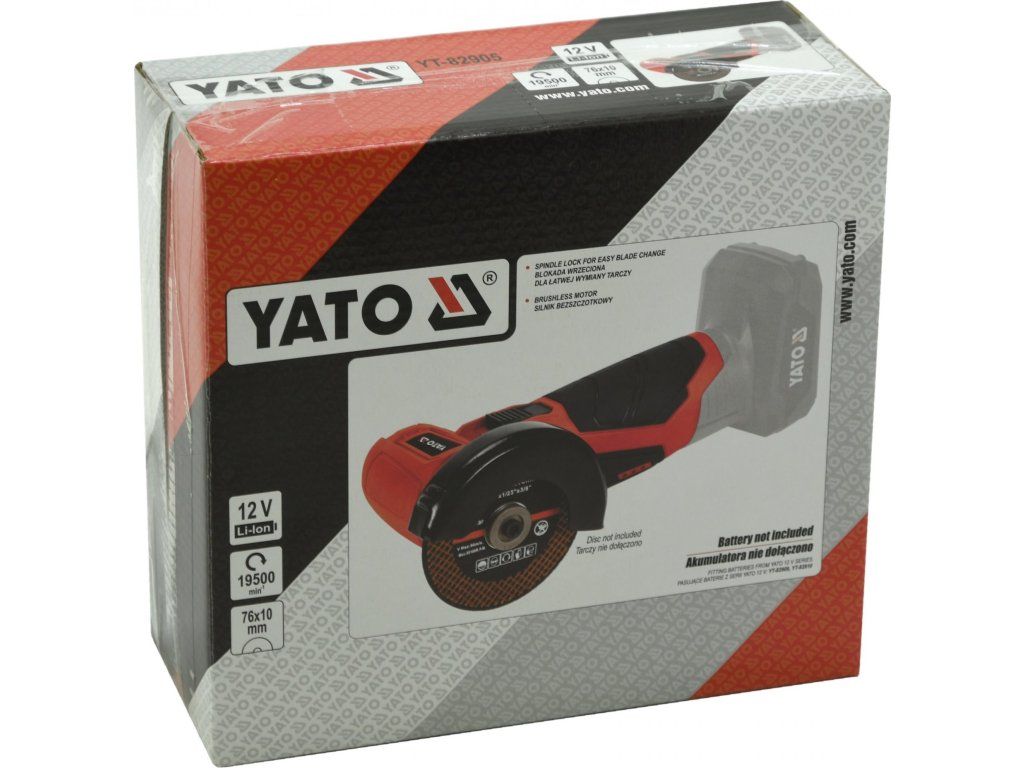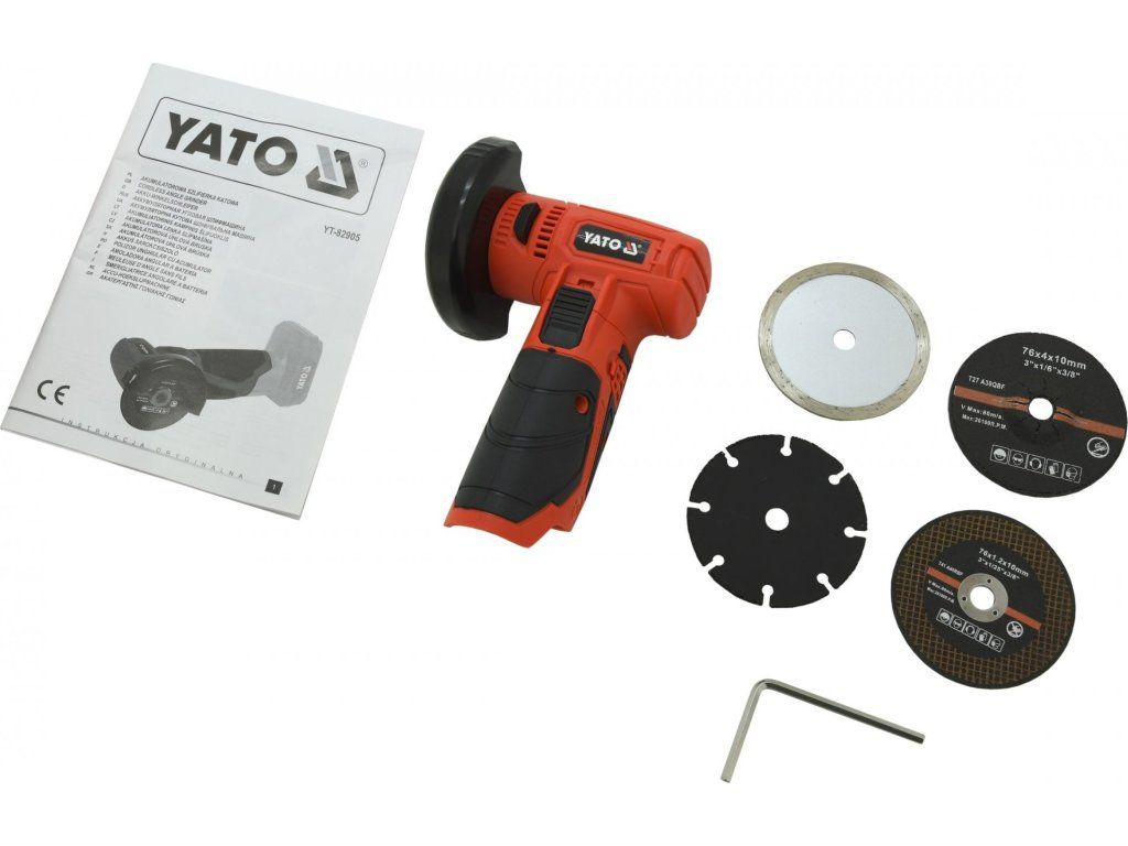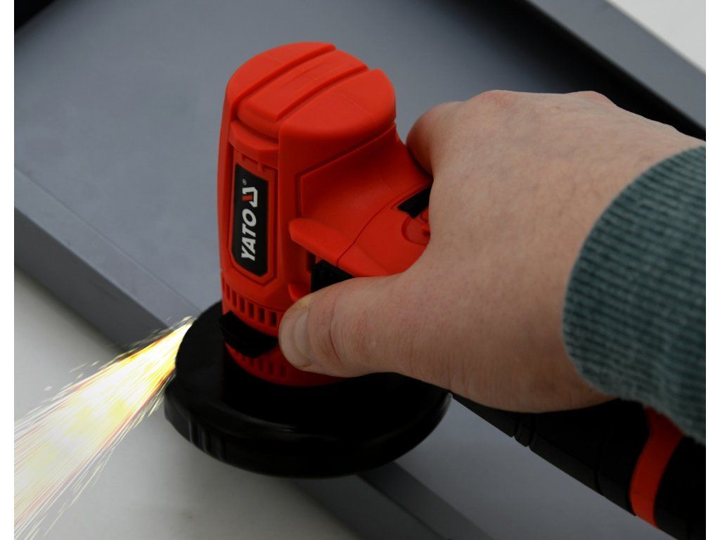 Kompaktní AKU úhlová řezačka značky Yato.