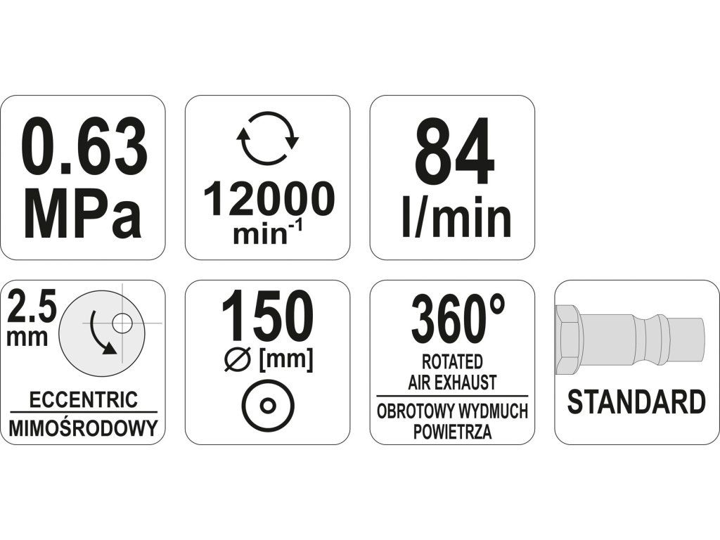 Profesionální excentrická bruska poháněná stlačeným vzduchem. Brusku lze použít na broušení i na leštění. Používá se v automobilových službách a v průmyslu.