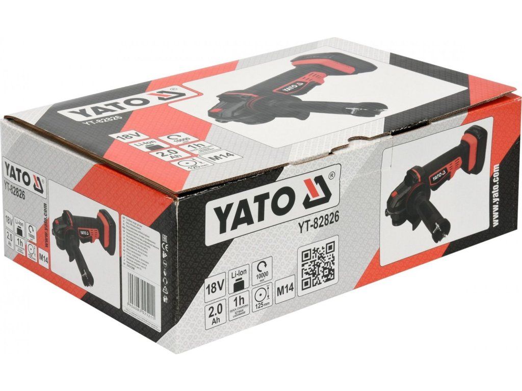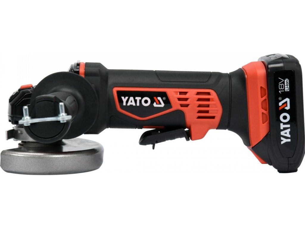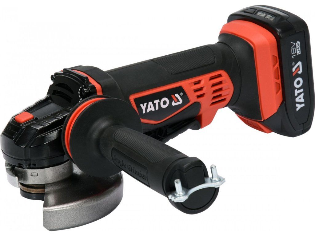 Kompaktní AKU úhlová bruska značky Yato s výkonným motorem až s 10000 otáčkami za minutu.