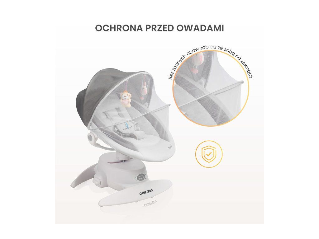 ![]() | Ochrona Przed OwadamiZintegrowana moskitiera z daszkiem zapewnia skuteczną ochronę przed owadami, zarówno podczas snu, jak i zabawy na świeżym powietrzu. |