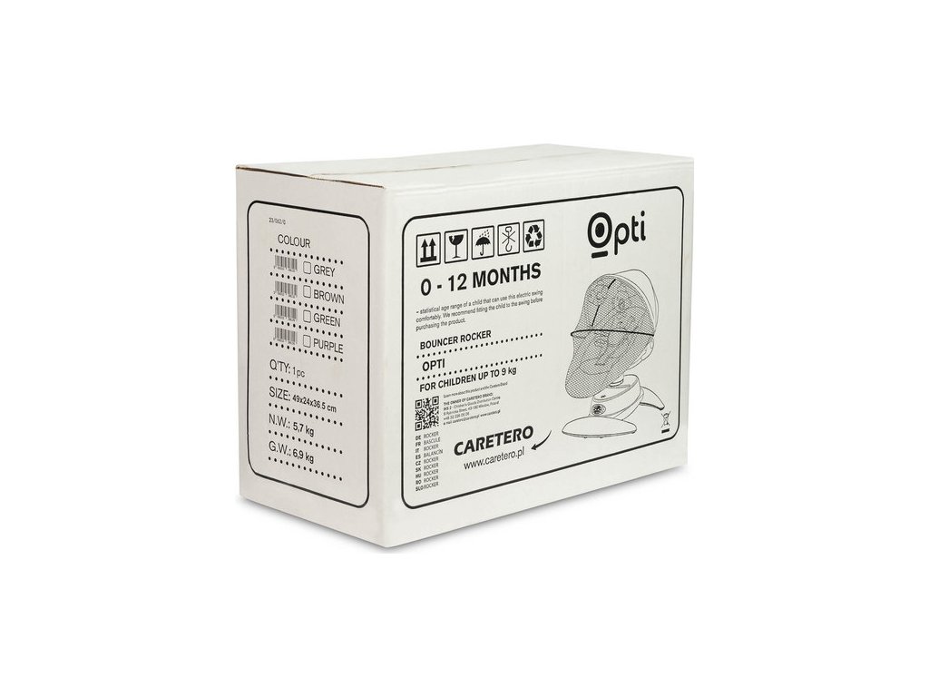 OPTI to rewolucyjny bujaczek dziecięcy, który zapewnia wyjątkowy komfort dziecka. Z myślą o potrzebach i bezpieczeństwie dziecka, marka CARETERO wprowadza nowoczesne urządzenie, które oferuje trzy tryby pracy oraz możliwość pełnego kontrolowania pozycji siedzenia dla maksymalnego relaksu i przyjemności. Bujaczek może być obsługiwany zdalnie za pomocą pilota.