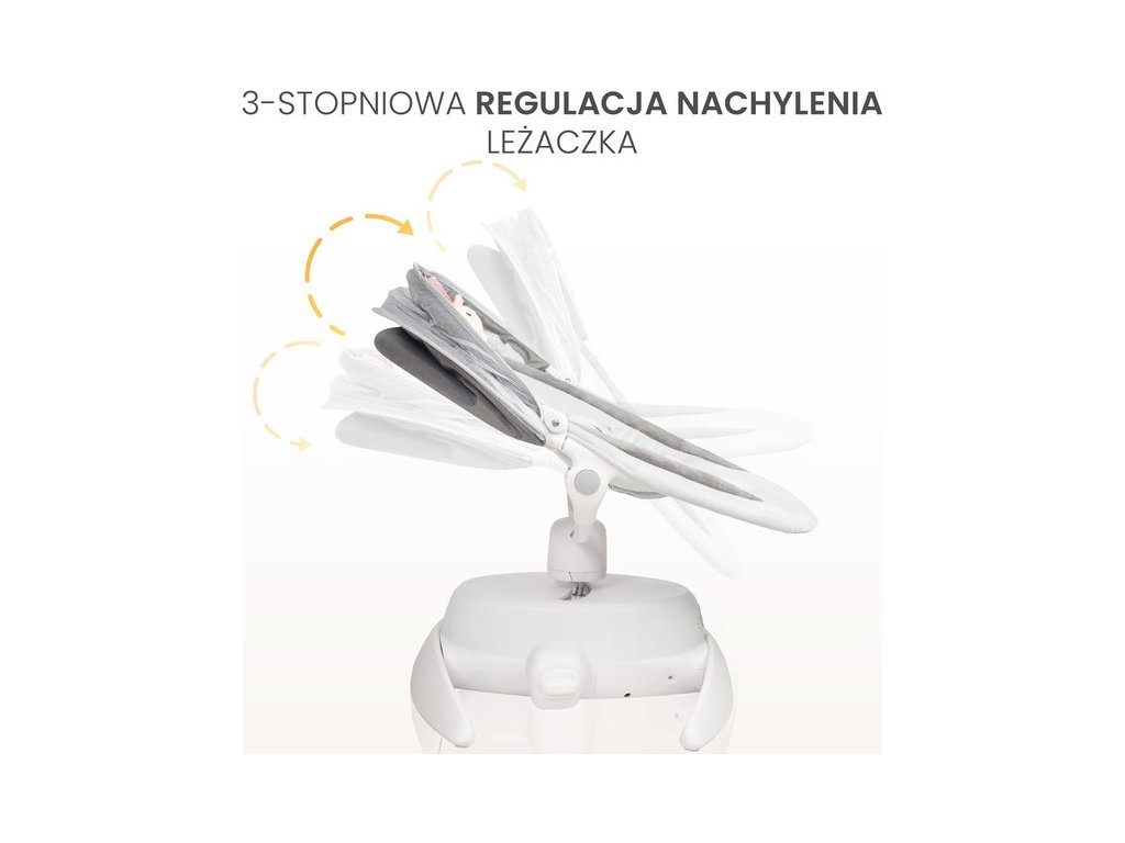 • regulacja pochylenia leżaczka - dzięki trzem różnym kątom pochylenia leżaczka, rodzice mogą dostosować pozycję do preferencji i potrzeb dziecka, zapewniając mu maksymalny komfort podczas drzemki czy zabawy;