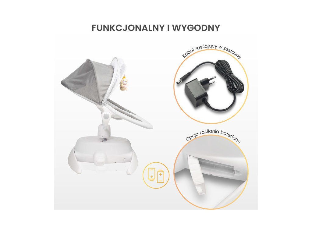 • intuicyjny panel sterowania - umożliwia łatwą obsługę i dostosowanie ustawień bujania według potrzeb, zapewniając szybkie i wygodne korzystanie z urządzenia;