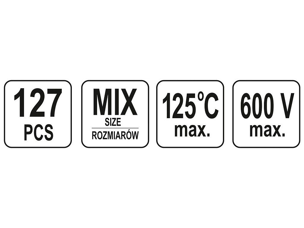 Sada 127ks smršťovacích bužírek s odolností do 600V a 125°C.