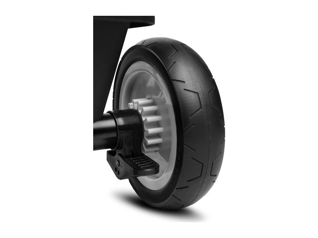 Přední kolo 24 cm, zadní kola 20 cm v průměru